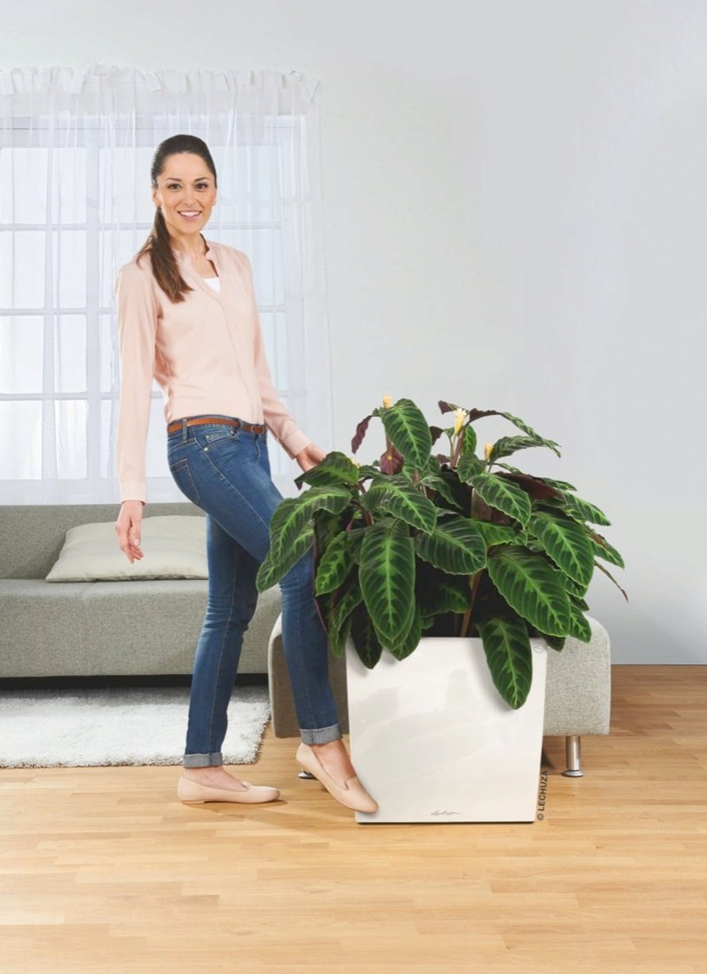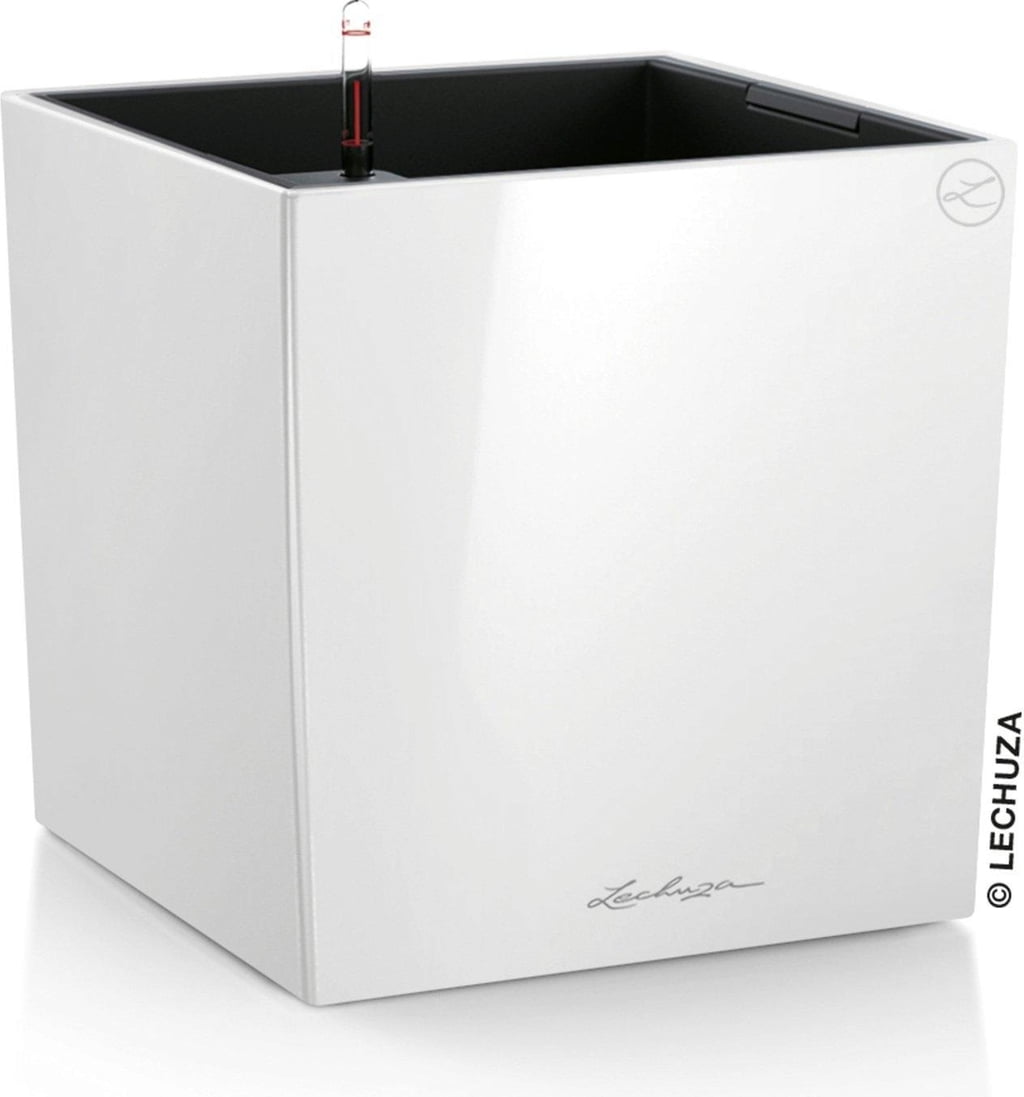 Lechuza CUBE Premium 50 Självvattnande Kruka, vit högglans
