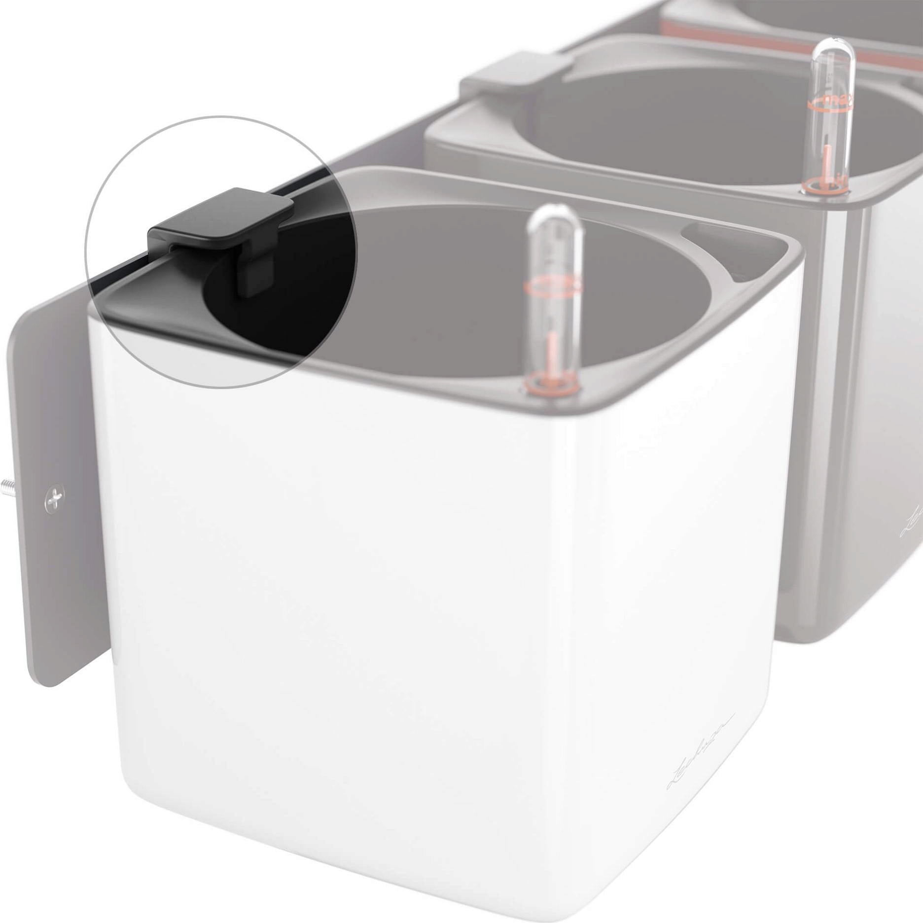 De magnetiska hållarna passar till Lechuzas krukor CUBE Color 14, CUBE Glossy 14 och CUBE Color Triple.