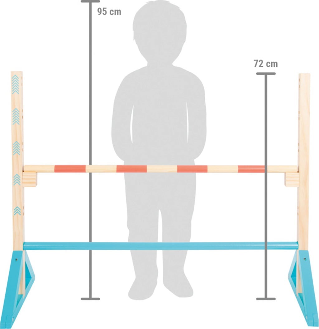 Höjden kan justeras steglöst mellan 20 och 70 cm, så att den passar perfekt efter barnens nivå och storlek. Robust trä, stabila fotstöd och trendiga naturfärger gör hindret till ett riktigt utomhusfavorit!