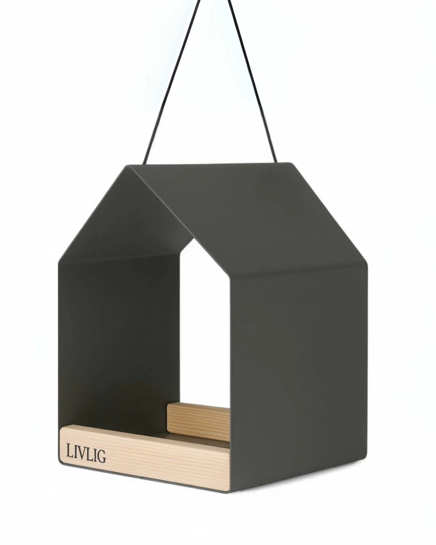 Detta eleganta fågelhus i pulverlackerad metall kombinerar minimalistisk design med praktisk mångsidighet. Oavsett om det är som matningsstation på vintern eller som fågelbad på sommaren - det väderbeständiga huset är en höjdpunkt året runt på balkonger, uteplatser eller i trädgårdar. Det är handgjort i Slovenien och imponerar med sitt högkvalitativa utförande, sina tydliga linjer och tidlösa färger som greige, antracit och mossgrå. Ett riktigt blickfång för alla som uppskattar stil och hållbarhet.