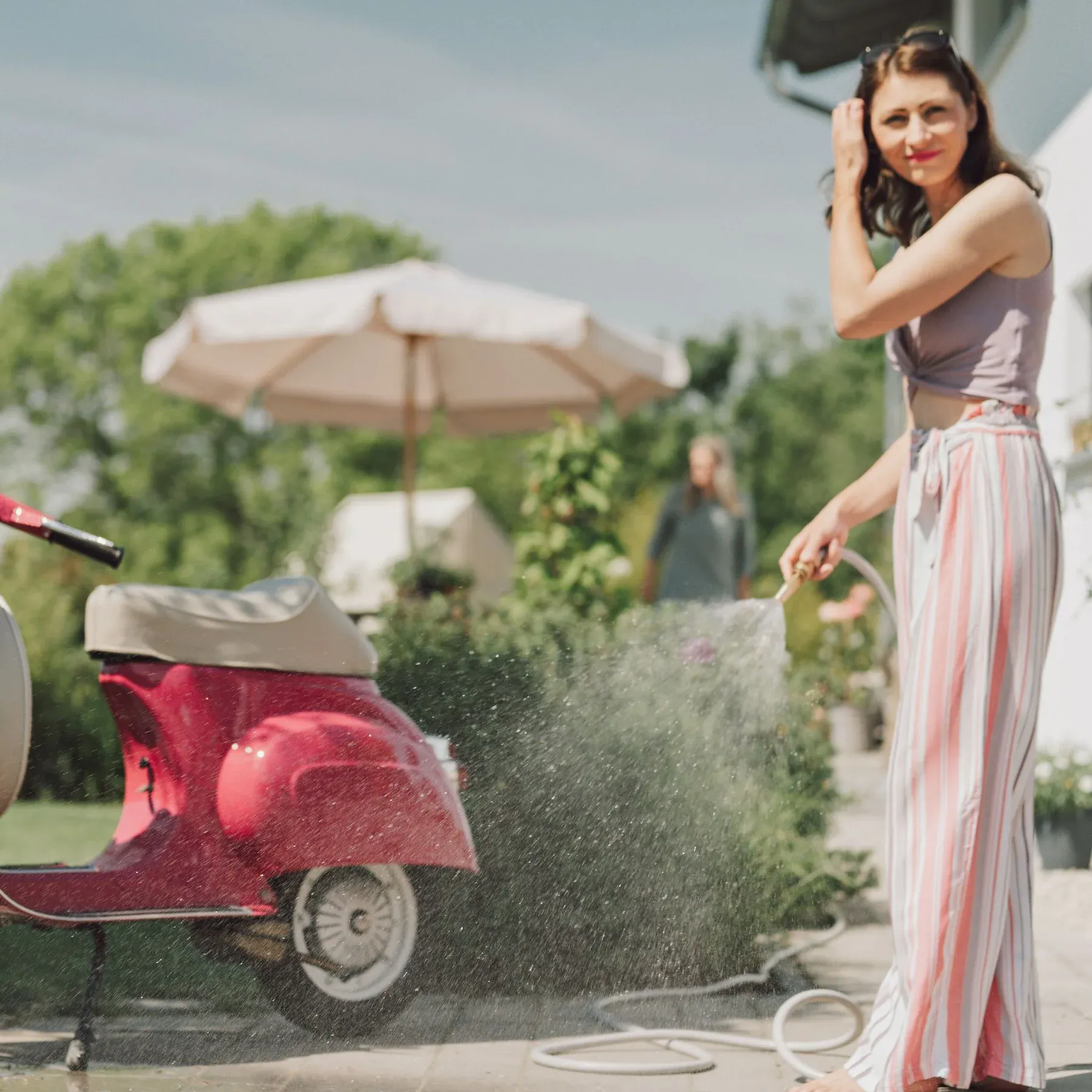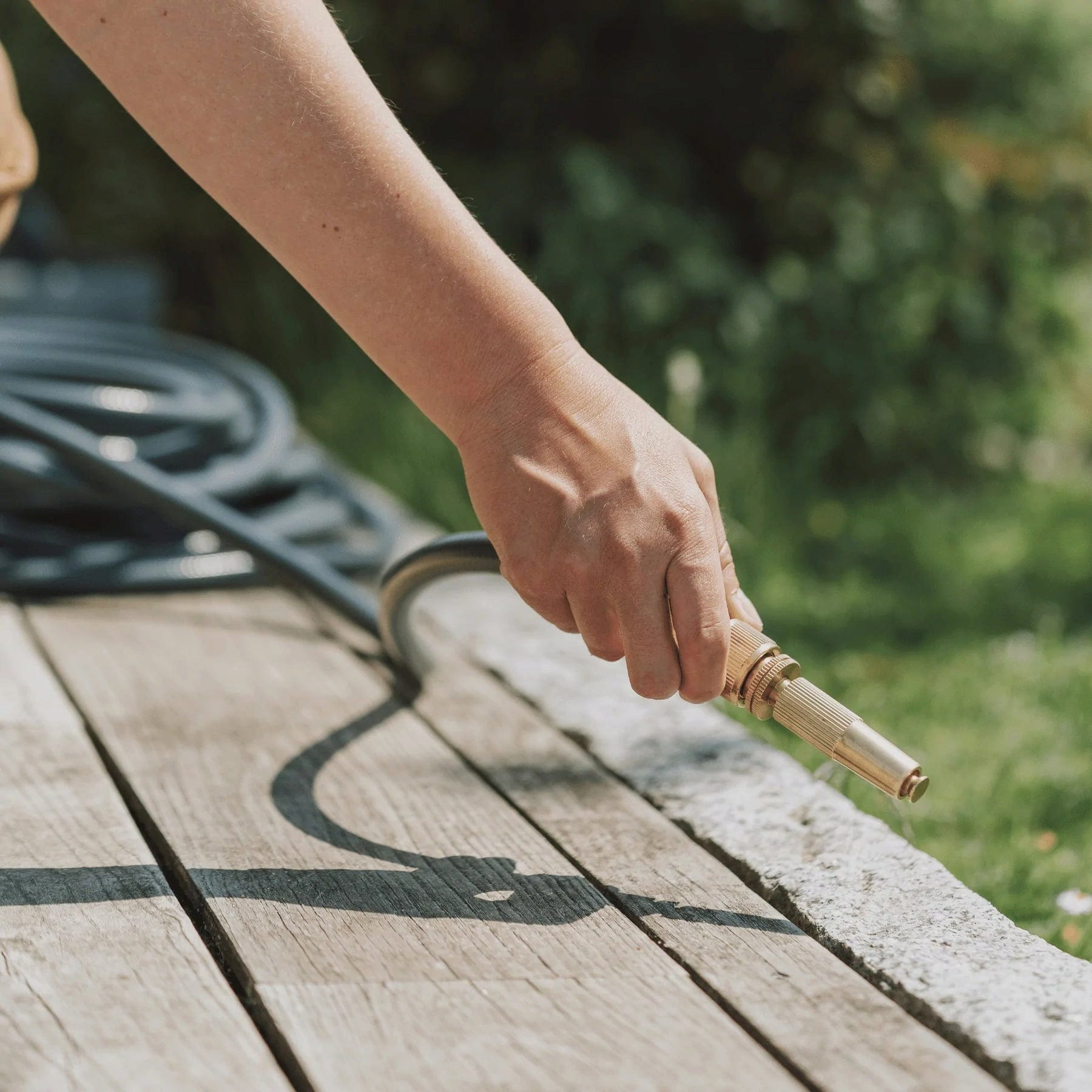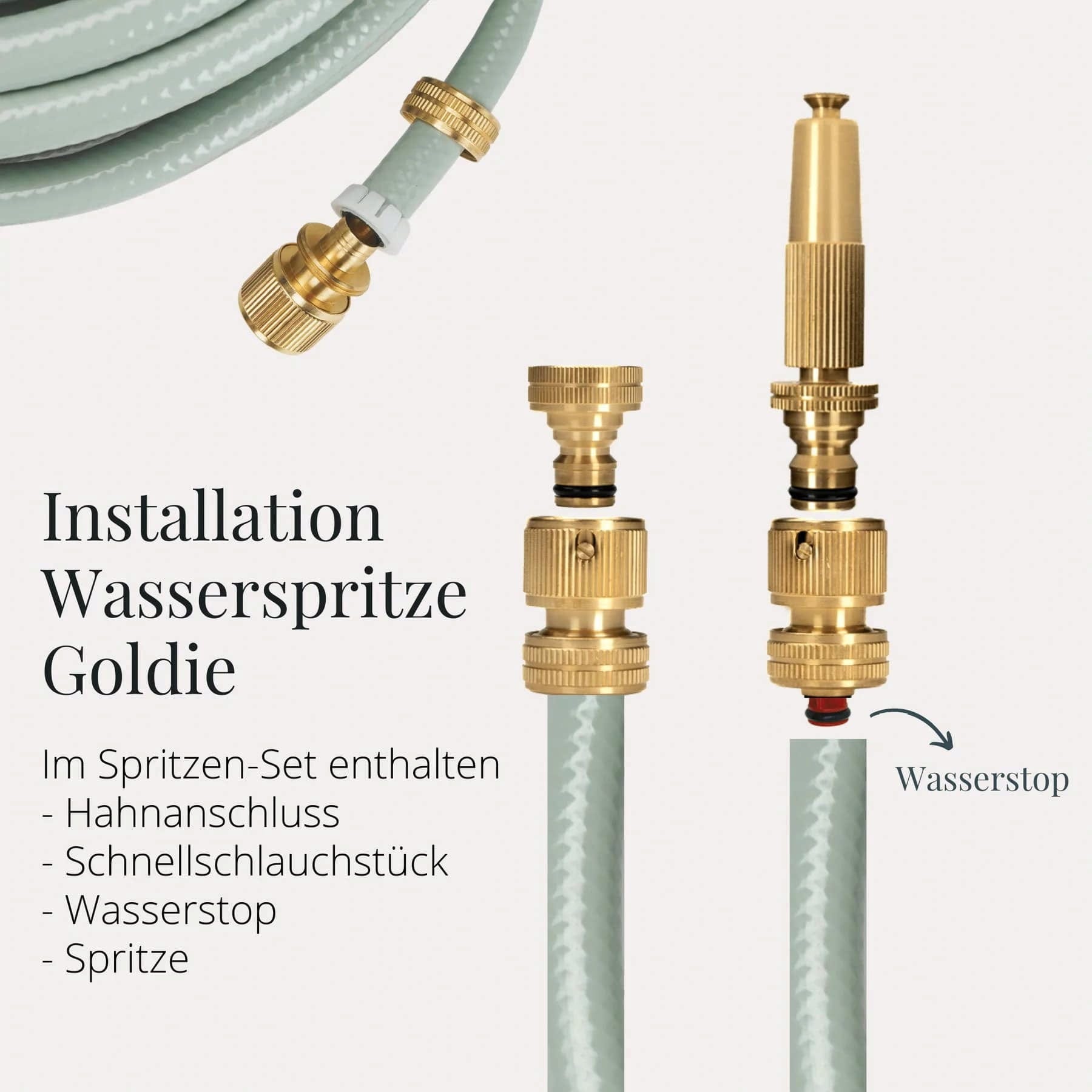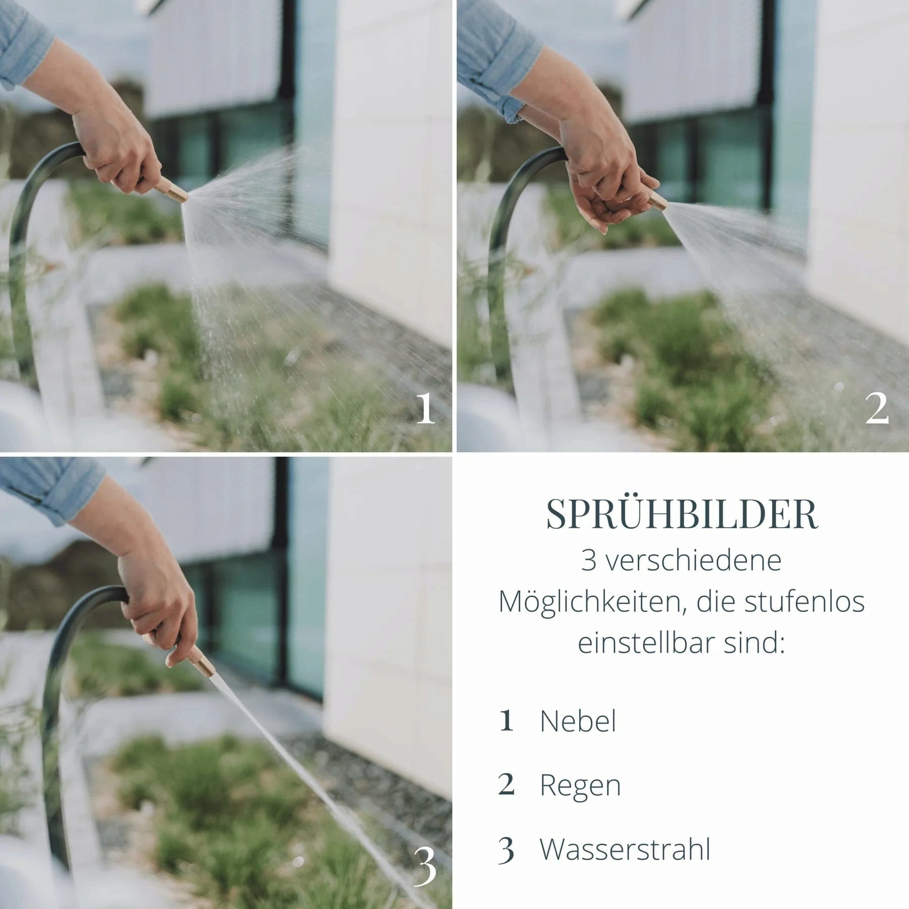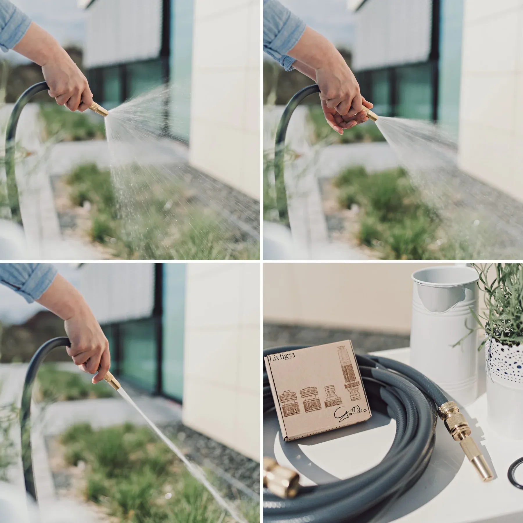 Elegant design och enastående material- och tillverkningskvalitet - denna trädgårdsspruta är det perfekta tillbehöret till stilrena trädgårdsslangar i skandinavisk design och kompletterar dem på ett unikt sätt. Denna gulddetalj är inte bara snygg, utan också mycket robust och perfekt för att vattna dina växter med vattenstråle, mjukt regn eller dimma.