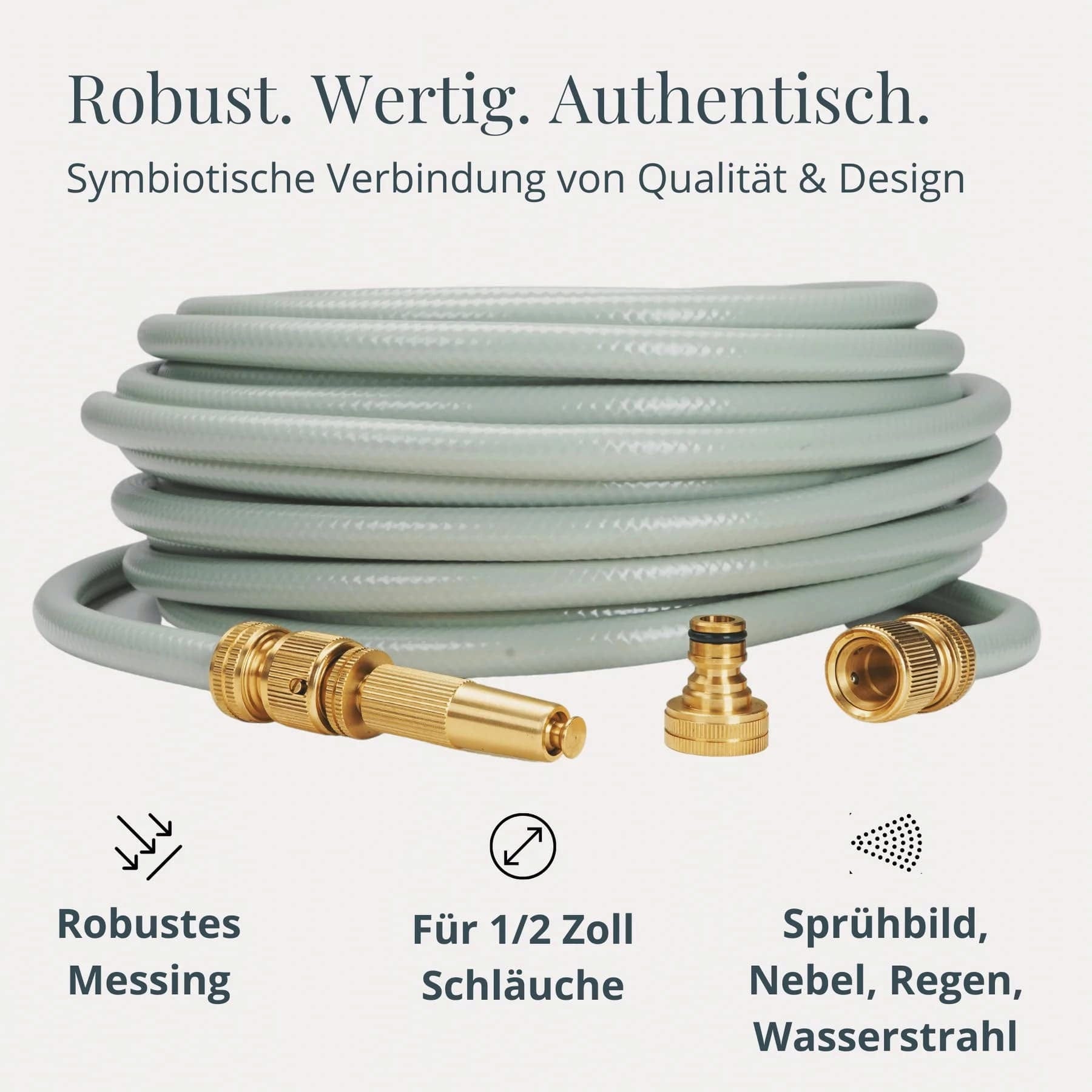 Elegant design och enastående material- och tillverkningskvalitet - denna trädgårdsspruta är det perfekta tillbehöret till stilrena trädgårdsslangar i skandinavisk design och kompletterar dem på ett unikt sätt. Denna gulddetalj är inte bara snygg, utan också mycket robust och perfekt för att vattna dina växter med vattenstråle, mjukt regn eller dimma.
