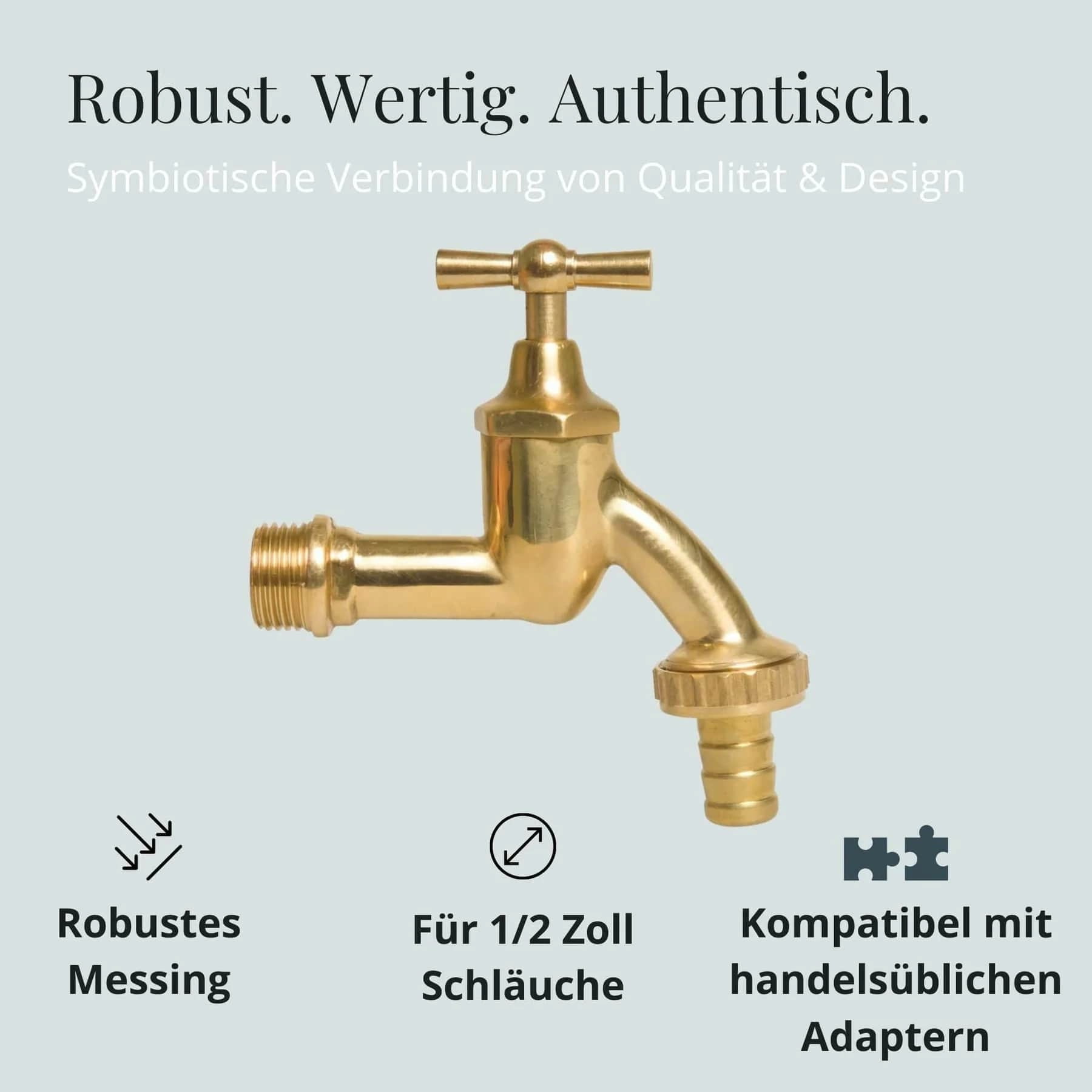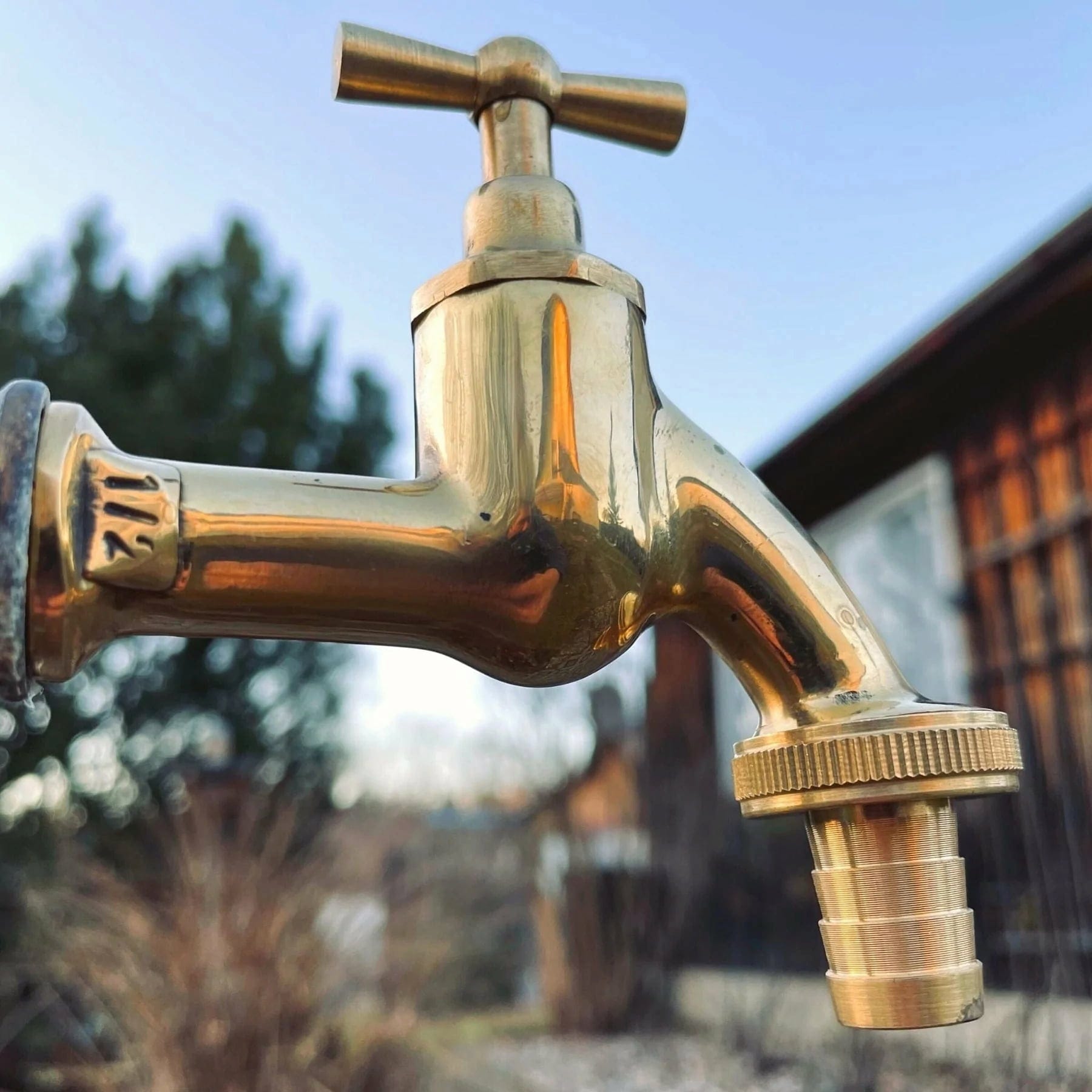 Denna vattenkran i robust mässing ger din trädgård en stilfull finish och sätter pricken över i. Med sin eleganta form och högkvalitativa utförande blir den ett blickfång som lyfter även något så vardagligt som trädgårdsbevattning - särskilt i kombination med mässingssprutan Goldie och designslangen från Livlig53.