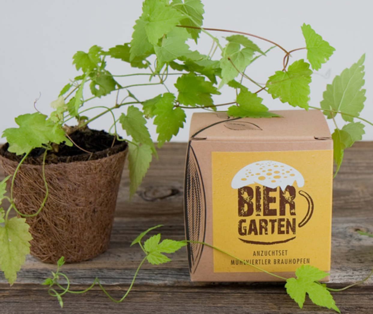 Detta odlingskit "Biergarten" innehåller frön av äkta kulturhumle samt allt du behöver för att lyckas med odlingen. Inget står i vägen för din egen ölbryggning!
