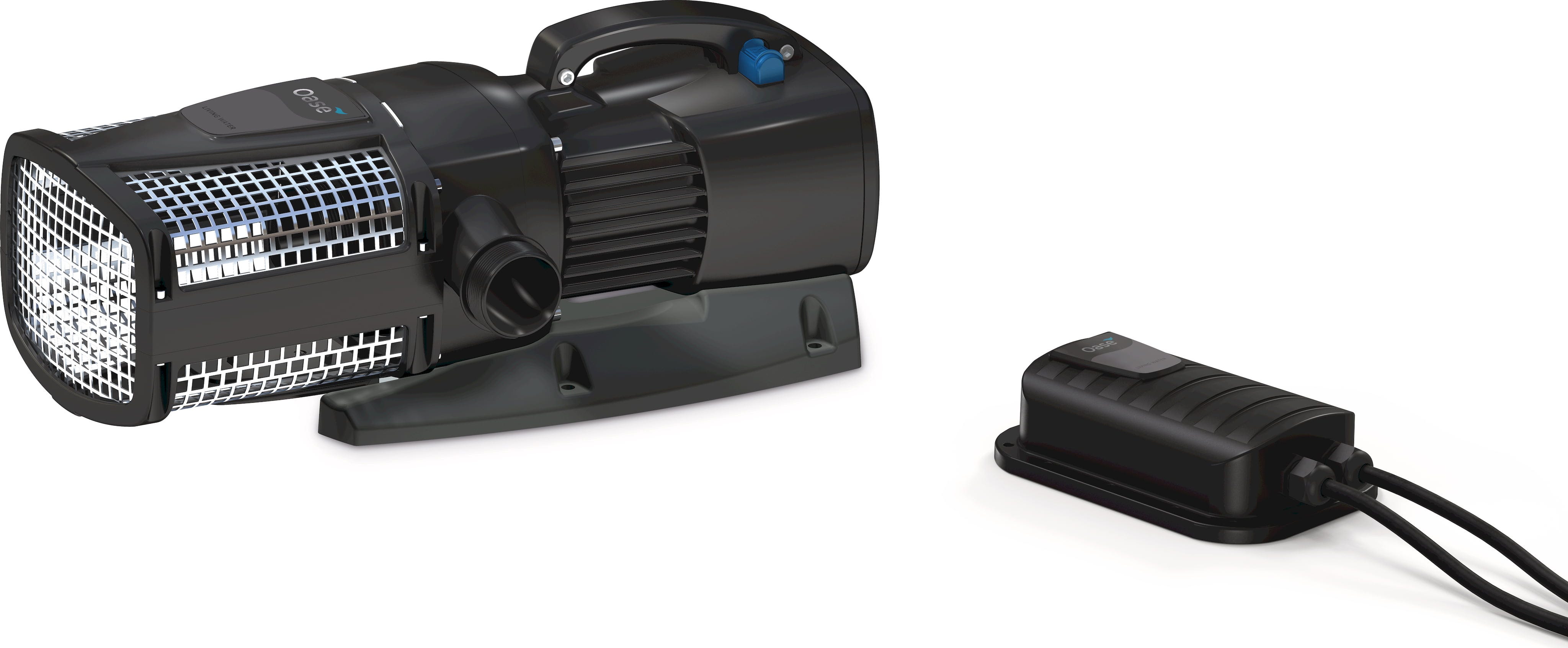 Du väljer själv om pumpen ska placeras nedsänkt eller torrt i en separat pumpkammare. Stabil konstruktion och balanserat handtag gör installationen enkel. Via Oase Control App kan pumpen styras digitalt, och det patenterade frostskyddet säkerställer problemfri drift ner till -20 °C.
