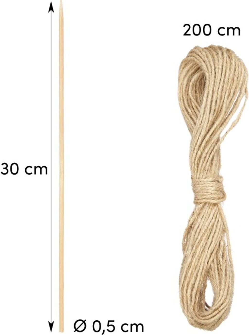 Det här setet innehåller 50 bambupinnar och passande jutesnöre för att binda upp dina växter på ett skonsamt sätt. Stödpinnarna är enkla att trycka ner i jorden och passar både inomhus och utomhus. De hjälper plantorna att växa rakt och starkt - ett viktigt stöd för frösådder, klätterväxter och unga plantor.