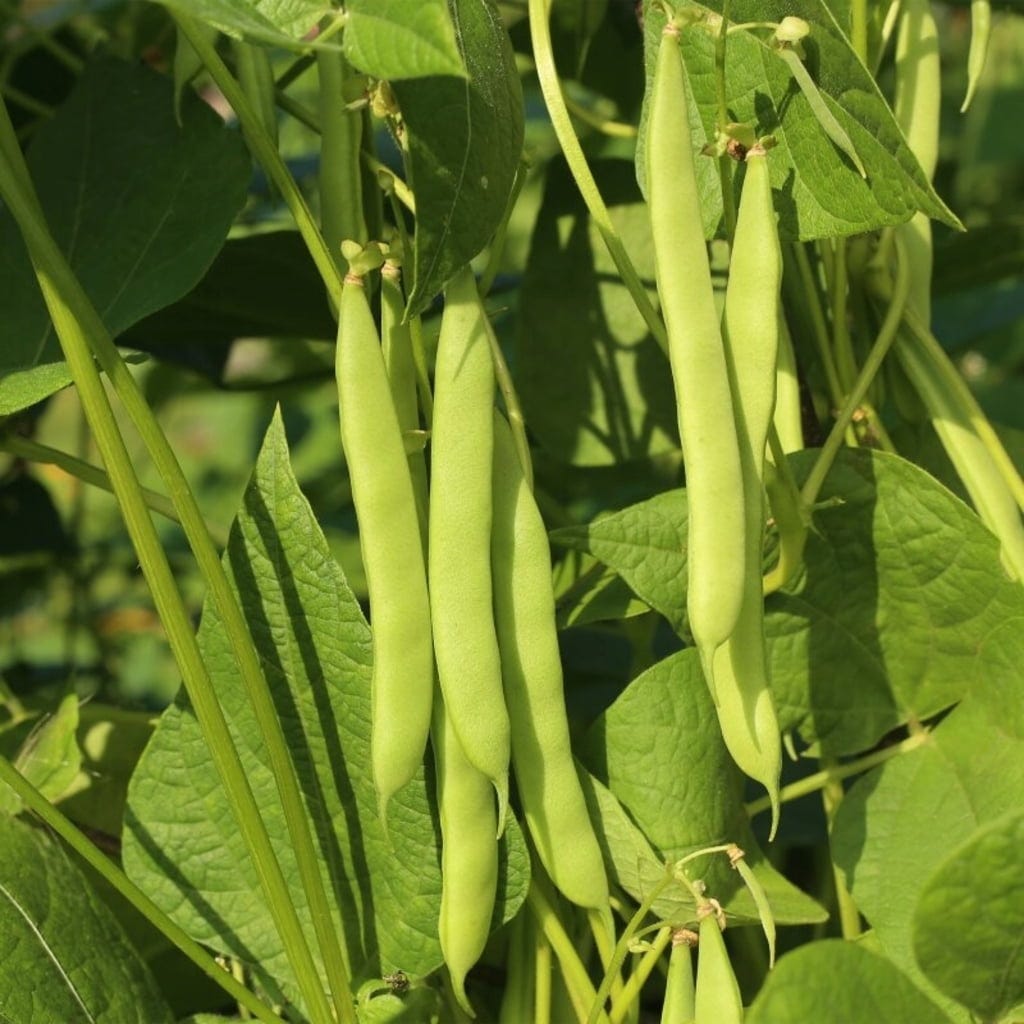 Bondböna (Hangdown grönkärnig), Klätterböna grön (Neckarkönigin), Klätterböna gul (Neckargold), Klätterböna blå (Blauhilde), Brytböna röd (Borlotto lingua di fuoco nano), Brytböna grön (Delinel)