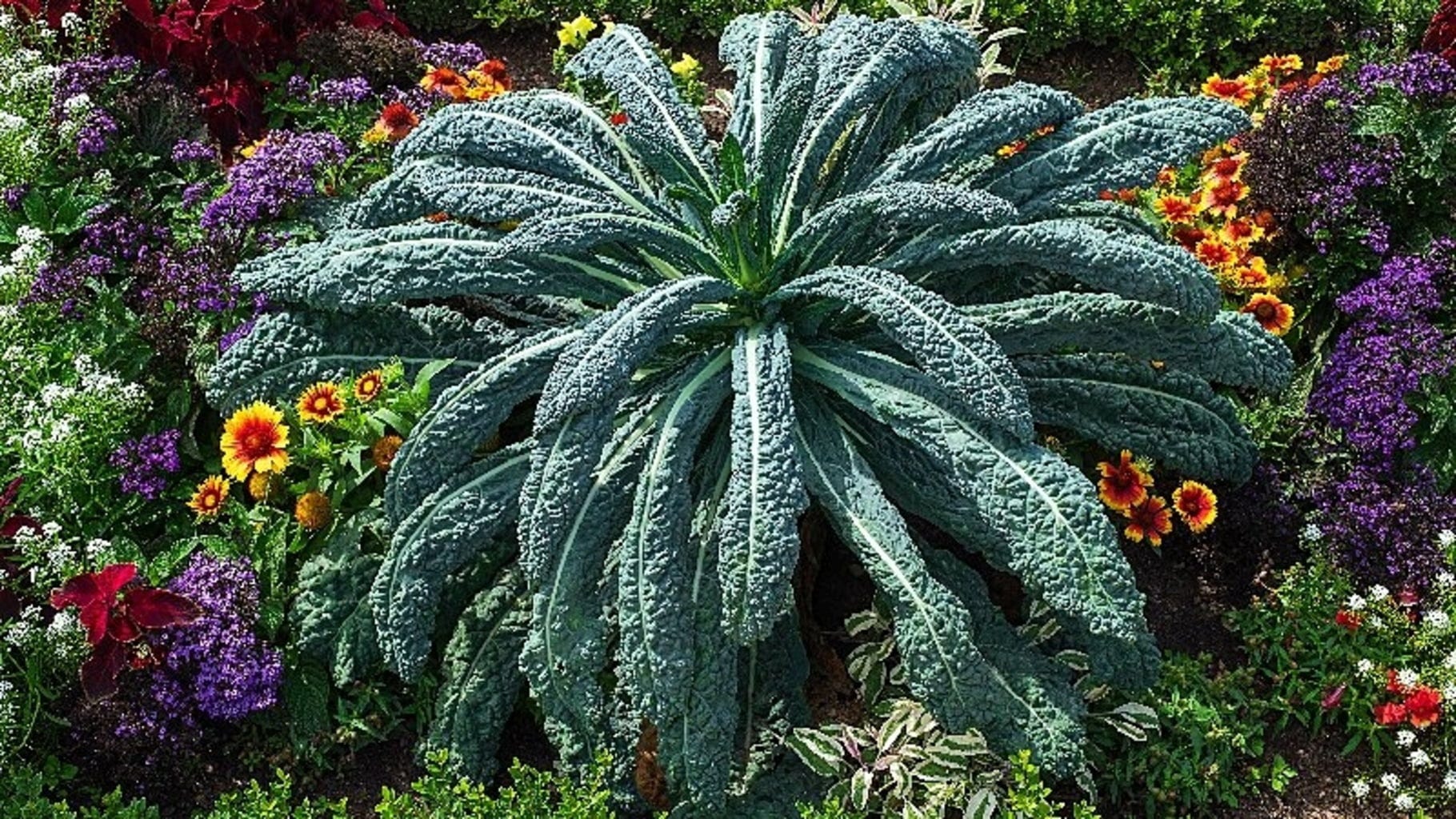 palmkål (nero di toskana), rödbeta randig (tonda di chioggia), kronärtskocka, jordgubbsspenat, vitkål (filderkraut), halv lång palsternacka, grön sparris mary washington, okra