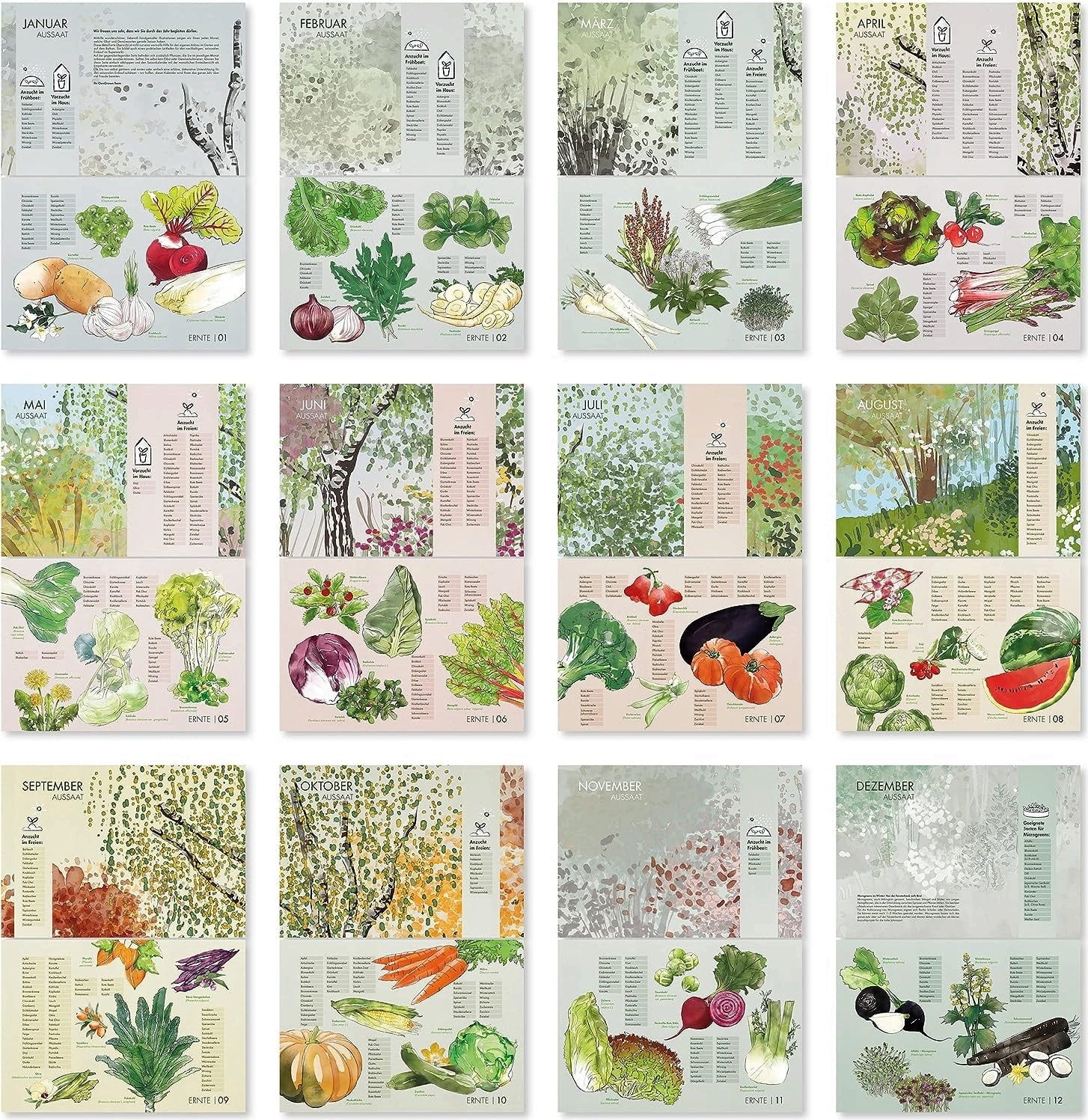 På baksidan av varje blad hittar du information om vilka växter som kan sås eller planteras under respektive månad. Med det här kunskapsstödet är du redo att skapa en prunkande trädgård. Och om du inte odlar själv? Då kan du enkelt vika undan baksidan och använda kalendern som en ren skördeöversikt.