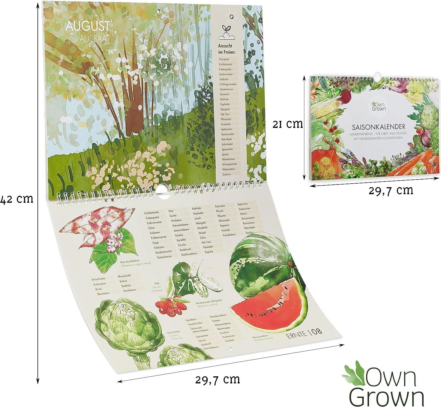 Med den vackert formgivna Säsongskalendern från OwnGrown får du inte bara en fin inredningsdetalj till väggen, utan också full koll på vilka frukter och grönsaker som är i säsong. Den är ett ovärderligt hjälpmedel för dig som vill handla mer hållbart - och dessutom ett färgstarkt inslag tack vare sina handmålade illustrationer.
