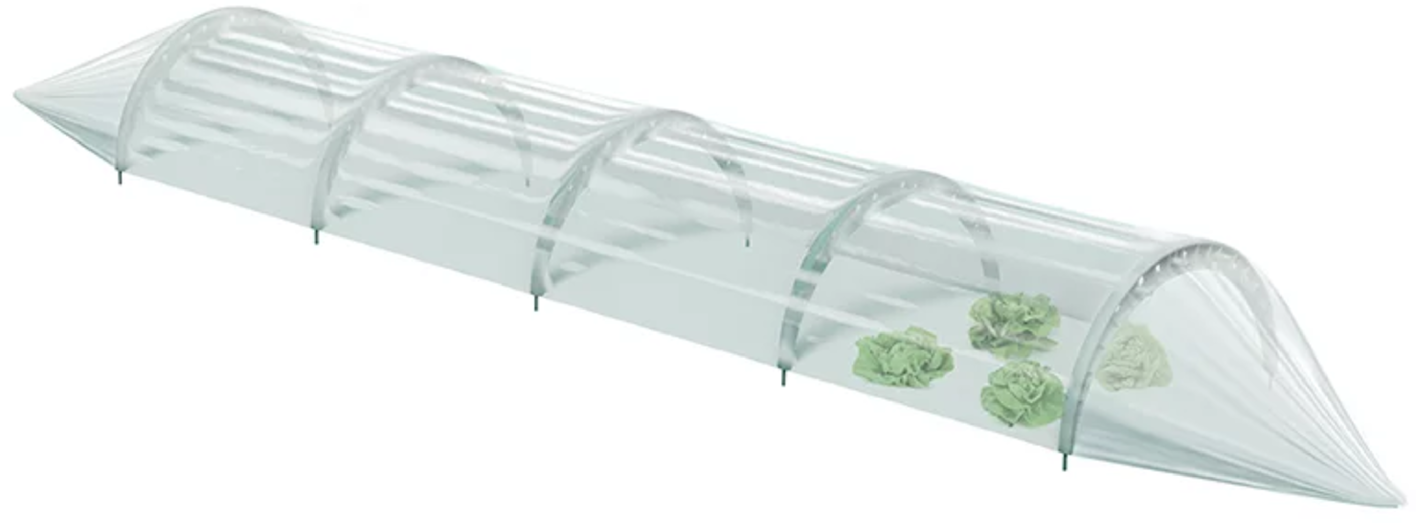 I denna folietunnel får växter som sallad och jordgubbar bra förutsättningar att växa och utvecklas på ett friskt och kraftigt sätt. Passar både för hobbyodling och odling på friland.