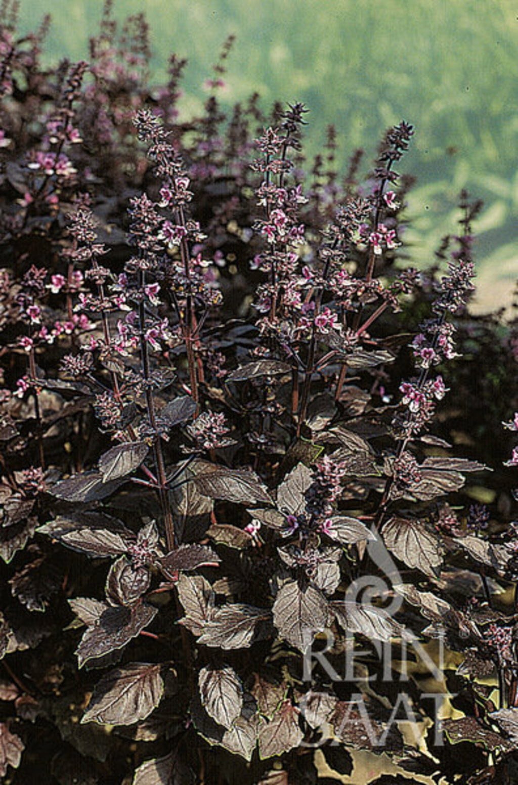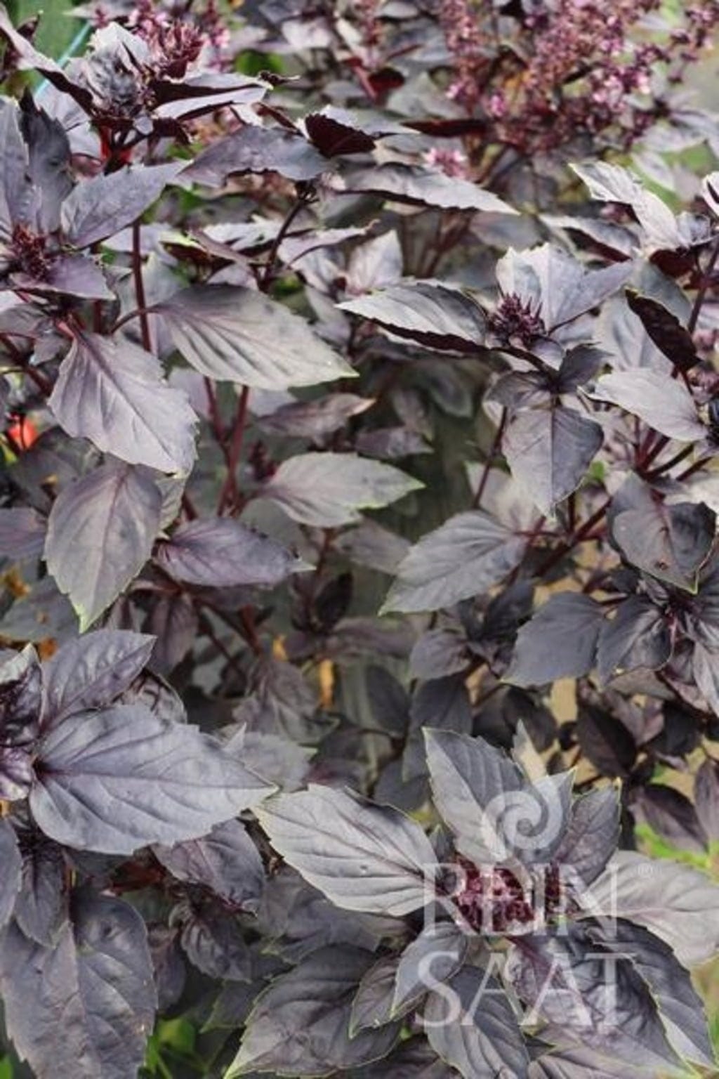 Ettårig, rödbladig basilika som blir cirka 30 cm hög och trivs i varma lägen.