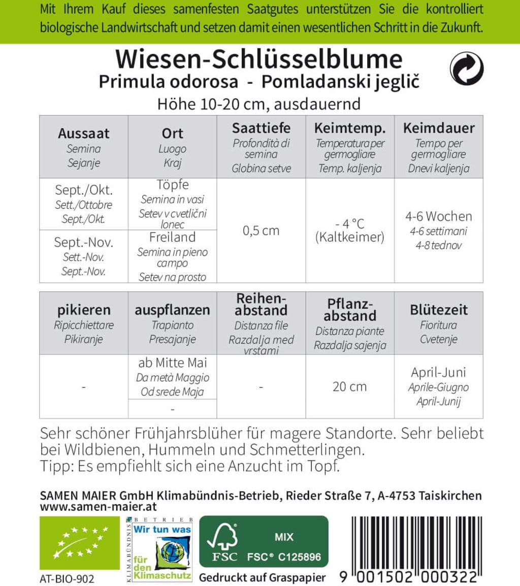 Vårt tips: Eftersom ängsnyckeln är en köldgroende växt, bör den sås vid en temperatur runt -4 °C. Vi rekommenderar förkultivering i kruka.