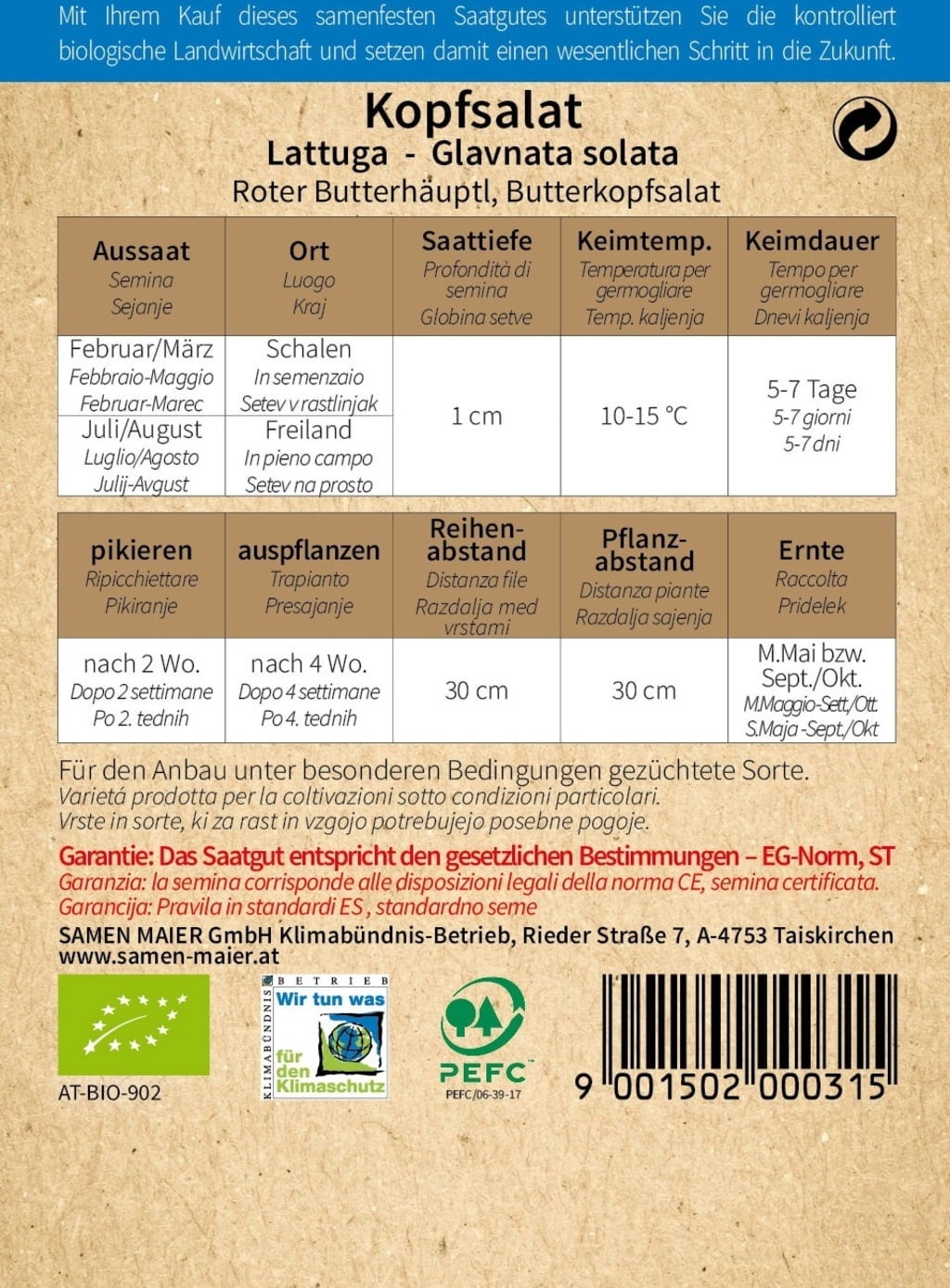 Samen Maier Huvudsallat "Röd Smörhuvud", Eko