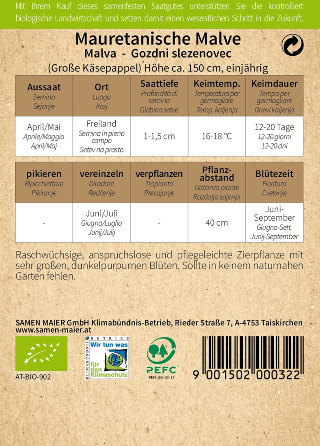 Samen Maier Mauritansk Malva, Eko