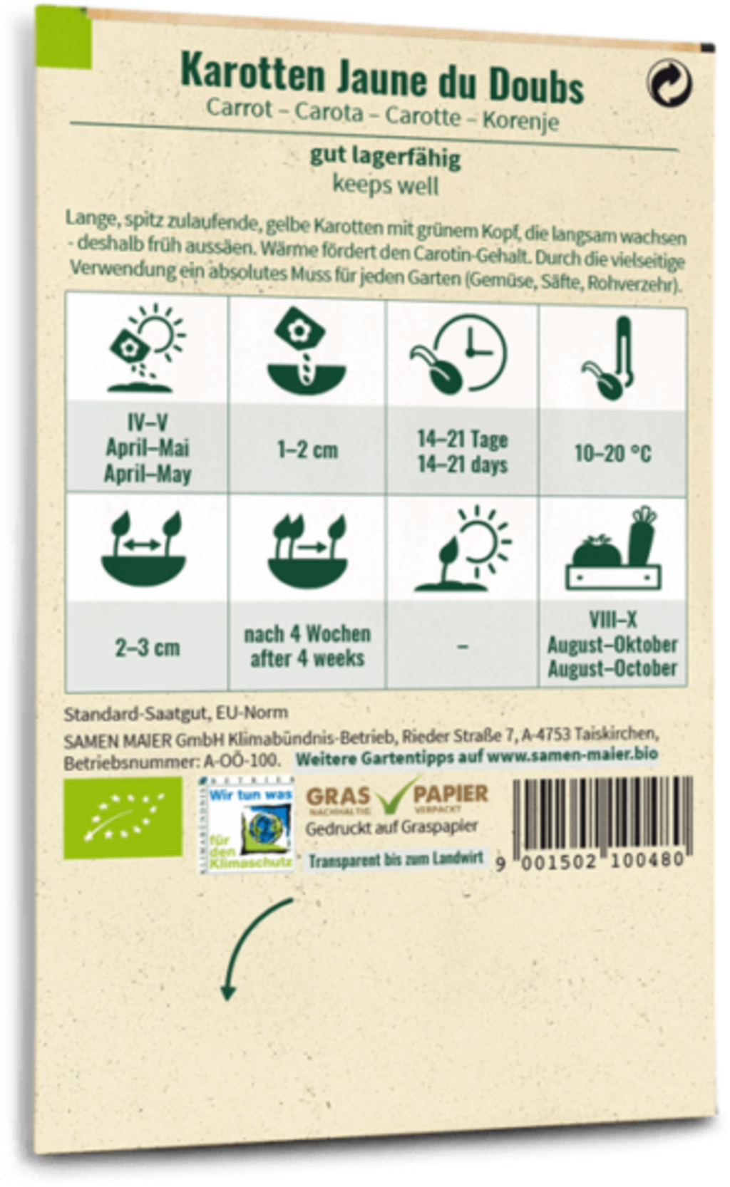 Samen Maier Morötter "Jaune Du Doubs", Eko