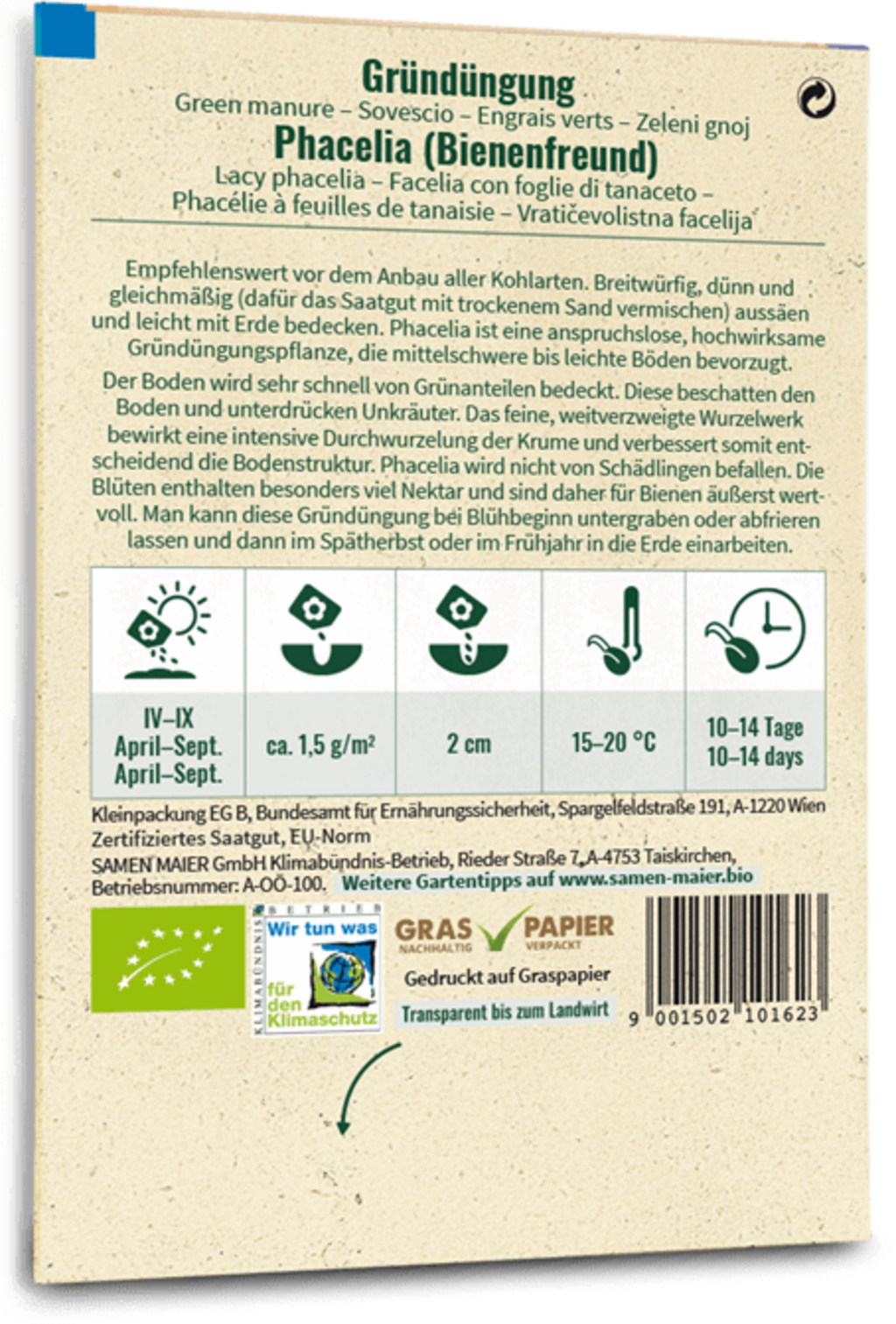 Phacelia är en lättodlad gröngödslingsväxt som lockar till sig mängder av nyttoinsekter som bin och andra pollinatörer. Den är rik på nektar och blommar i en vacker violett nyans. Phacelia kan sås för att förbättra jordstrukturen, motverka ogräs och som förkultur före odling av kål.