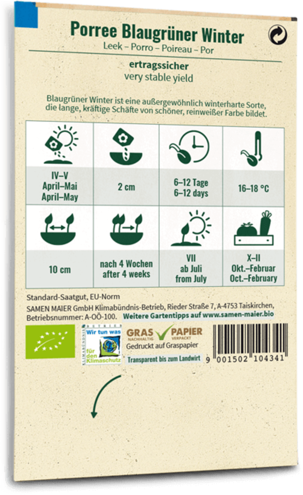 Samen Maier Purjolök "Blågrön Vinter", Eko