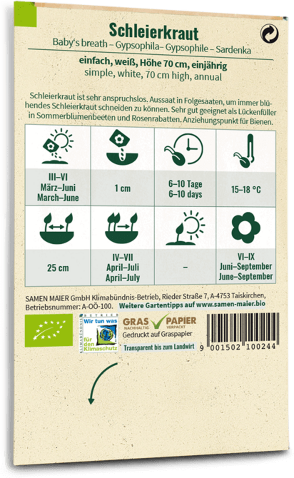 | Innehållet räcker till ca: | 50 plantor |