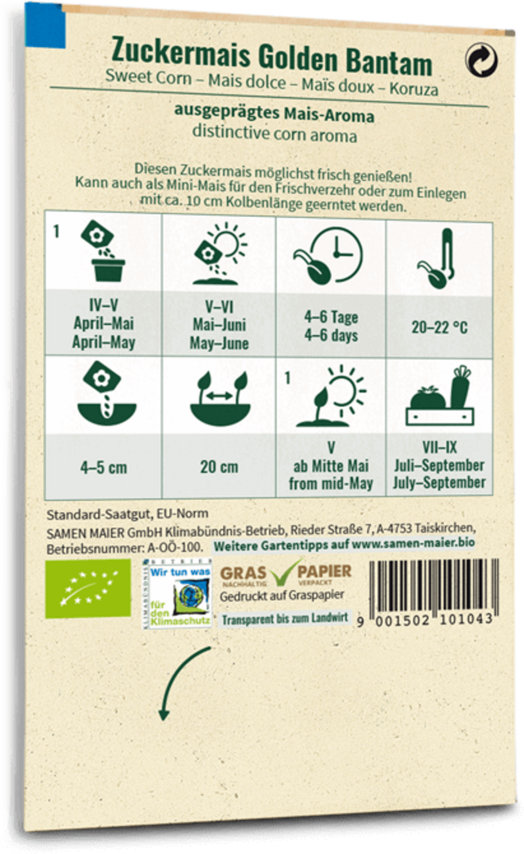 Samen Maier Sockermajs "Golden Bantam", Eko