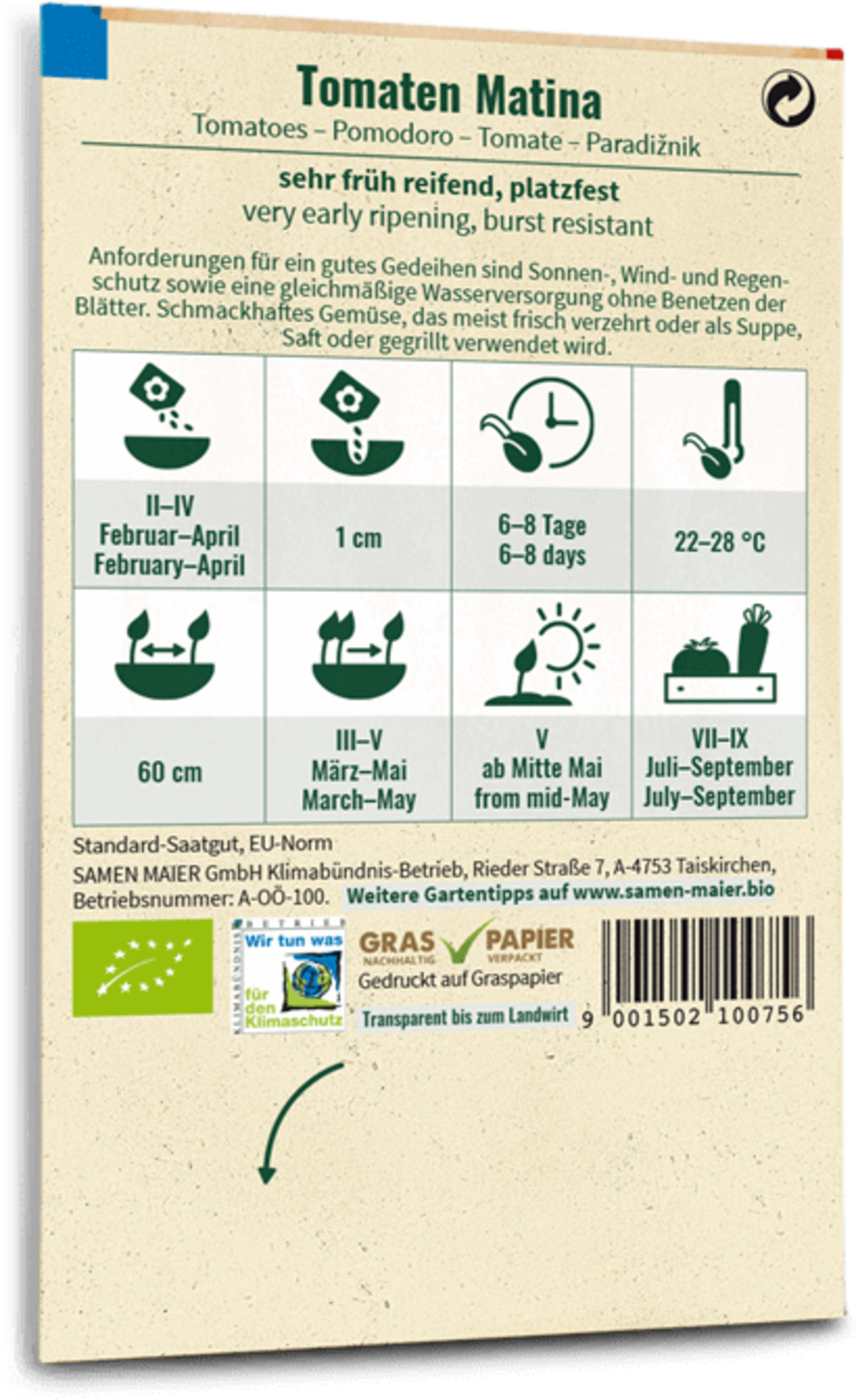 svenska recensioner skriven för Samen Maier Tomat "Matina", Eko