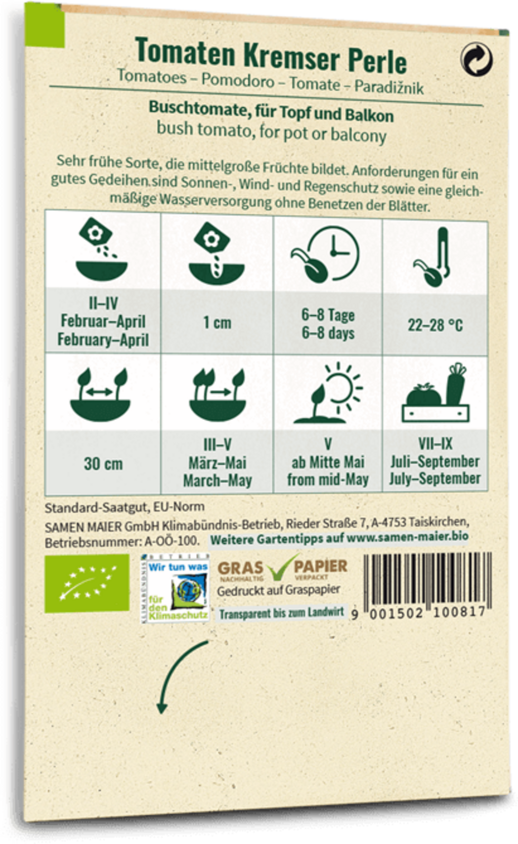 Samen Maier Tomater "Kremser Perle", Eko