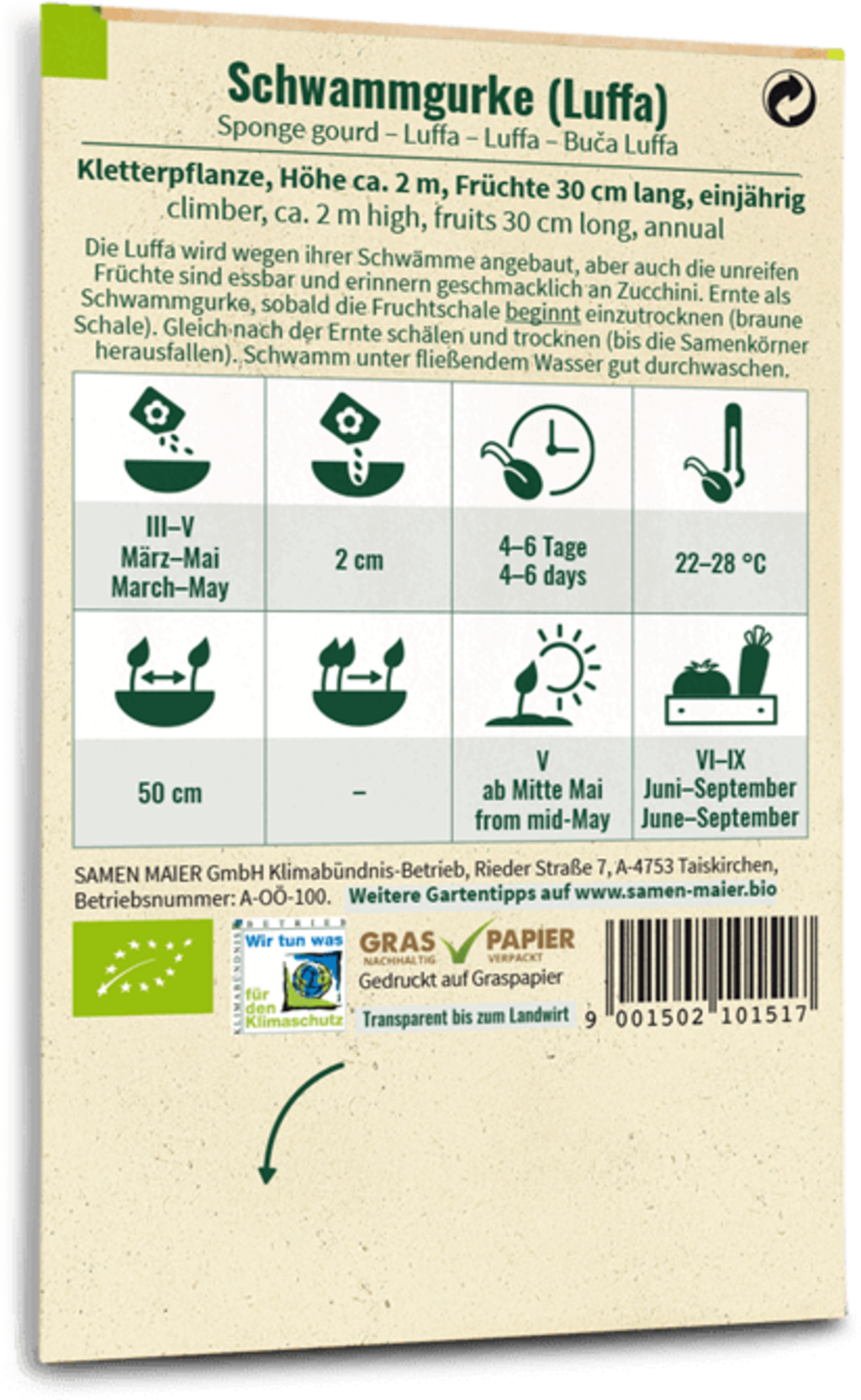 Samen Maier Tvättsvampgurka, Eko