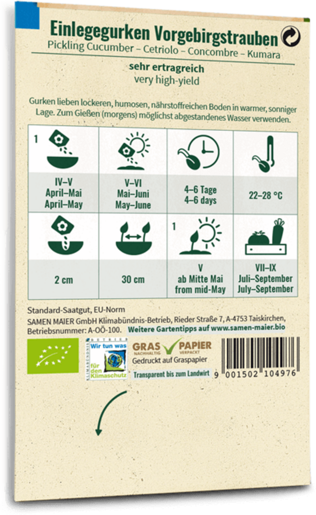 Samen Maier Västeråsgurka "Vorgebirgstrauben", Eko