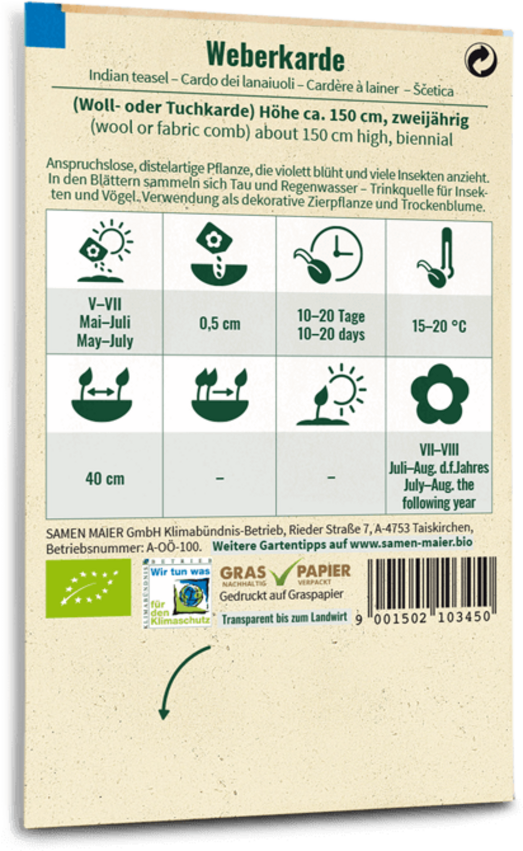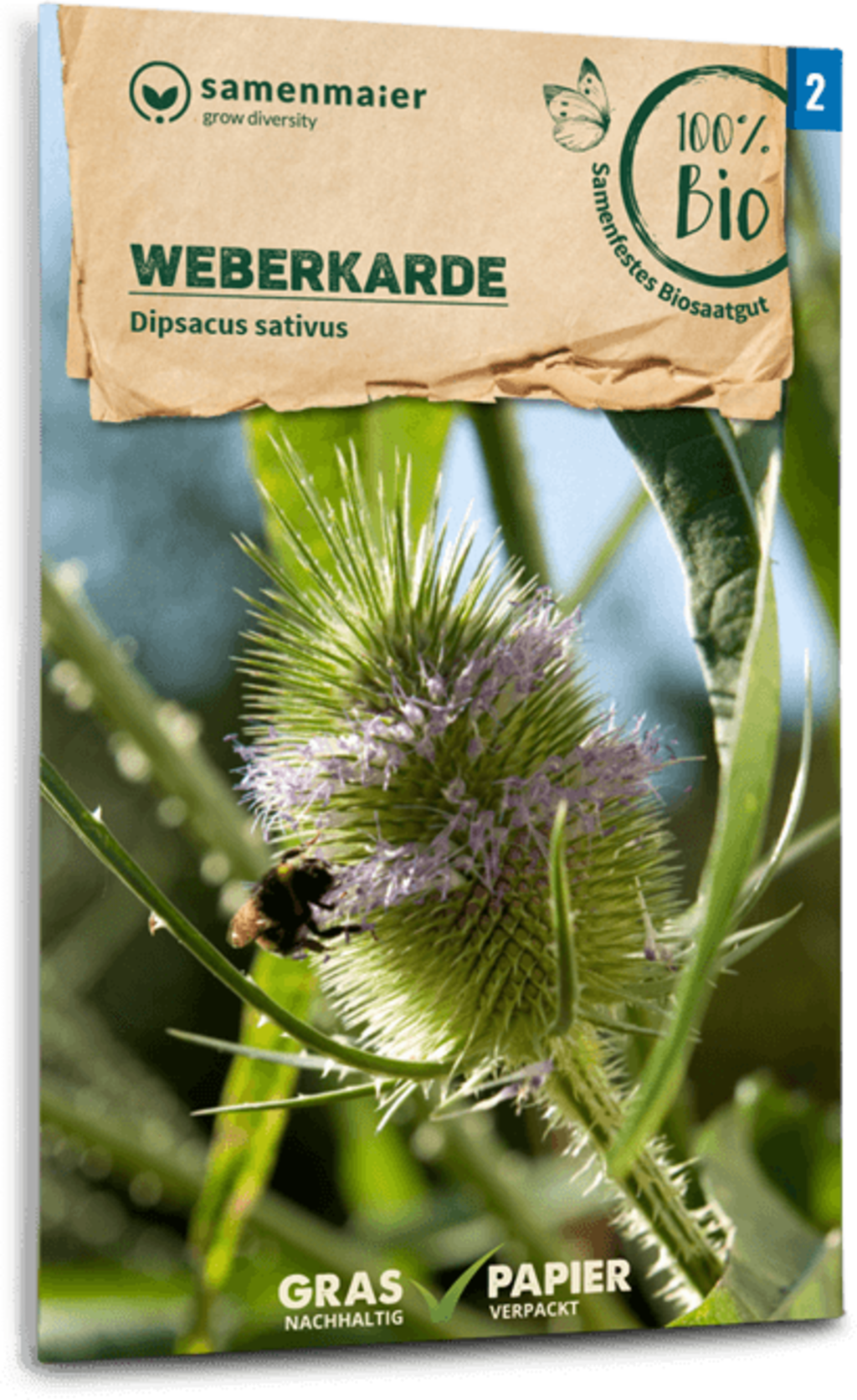 Vävtistel är en lättodlad, distelliknande växt med vackra, violetta blommor. Den är inte bara ett dekorativt inslag i trädgården, utan även utmärkt att torka. Dessutom fungerar den som en viktig näringskälla för bin. I bladrosetternas djupa skåror samlas regnvatten, vilket ger fåglar och insekter en naturlig vattenkälla.