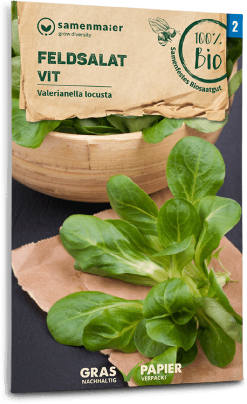 Sallat är ett måste - helst året runt och gärna ekologiskt. För att kunna njuta av denna fina fältsallat under lång tid: skörda bara de yttre bladen, så fortsätter nya blad att växa fram. Perfekt som förrätt, huvudrätt eller tillbehör, när du vill ha något fräscht och hälsosamt.