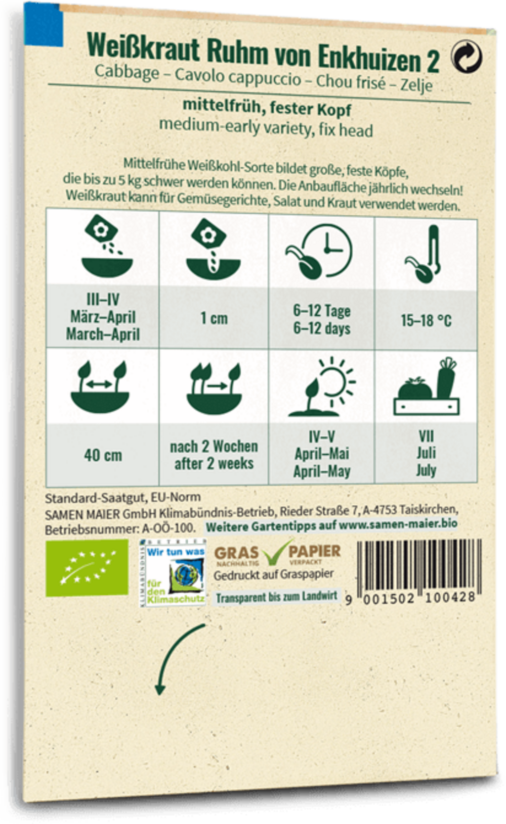 Samen Maier Vitkål "Ruhm von Enkhuizen", Eko