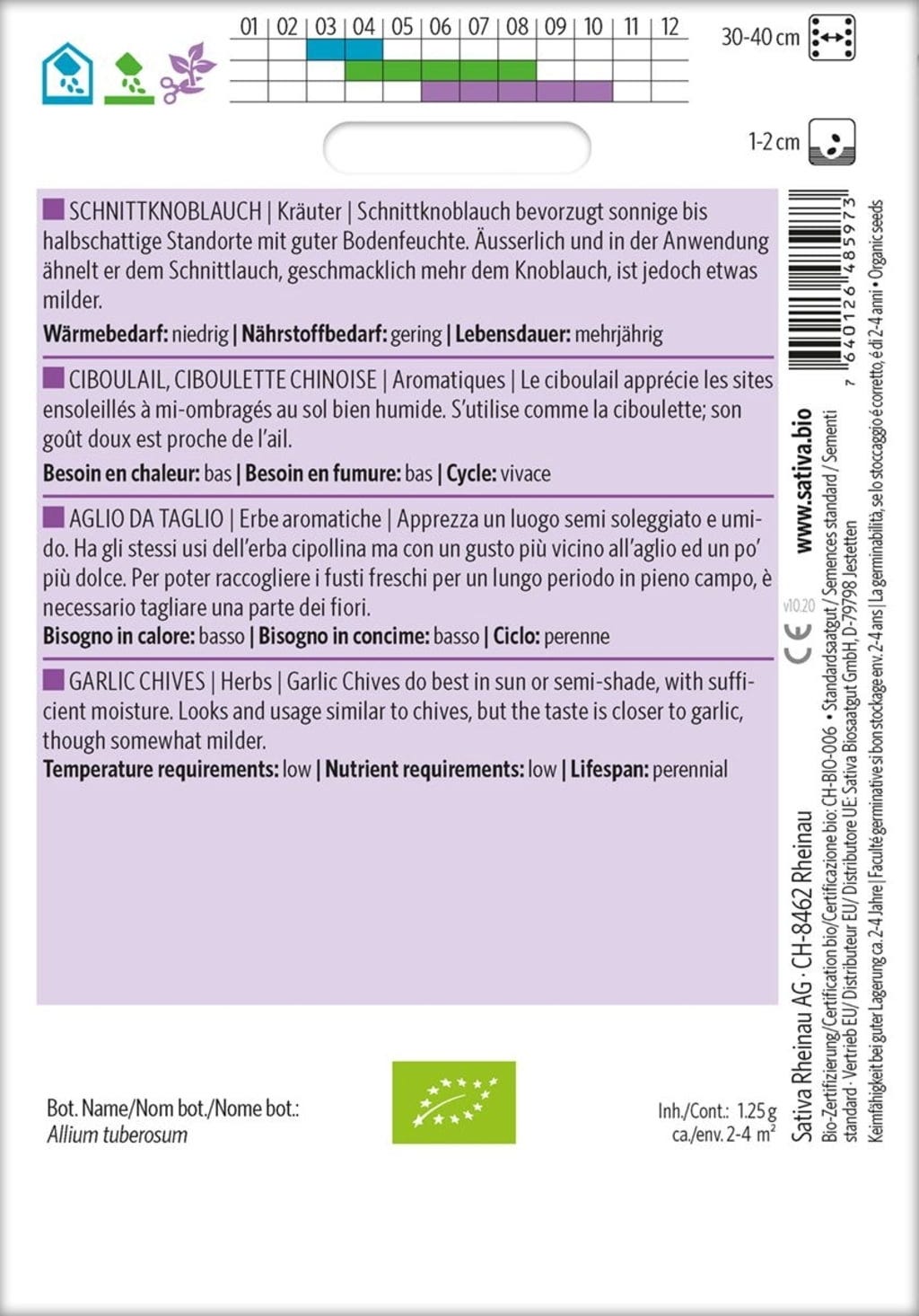 | Botaniskt namn: | Allium tuberosum |