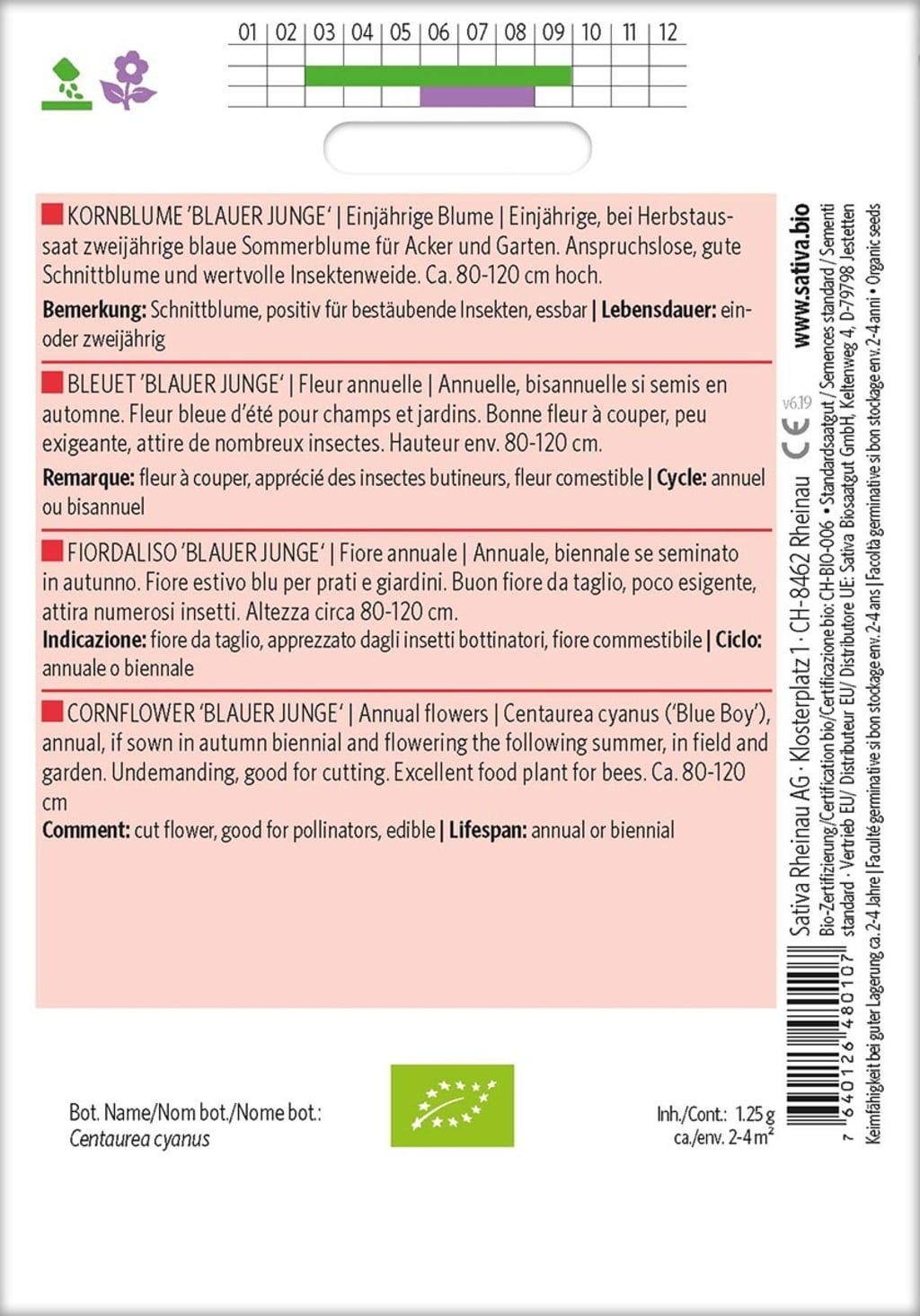 Sativa Ettårig Blomma "Kornblomma - Blå Pojke", Eko