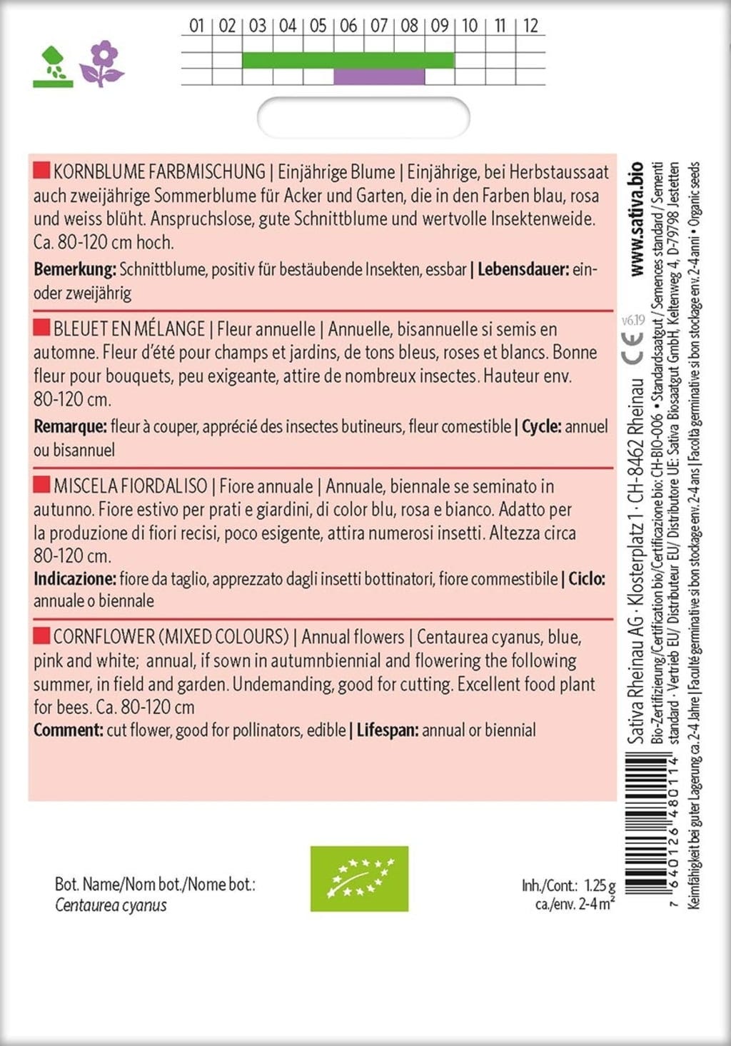 Sativa Ettårig Blomma "Kornblomma - Färgblandning", Eko
