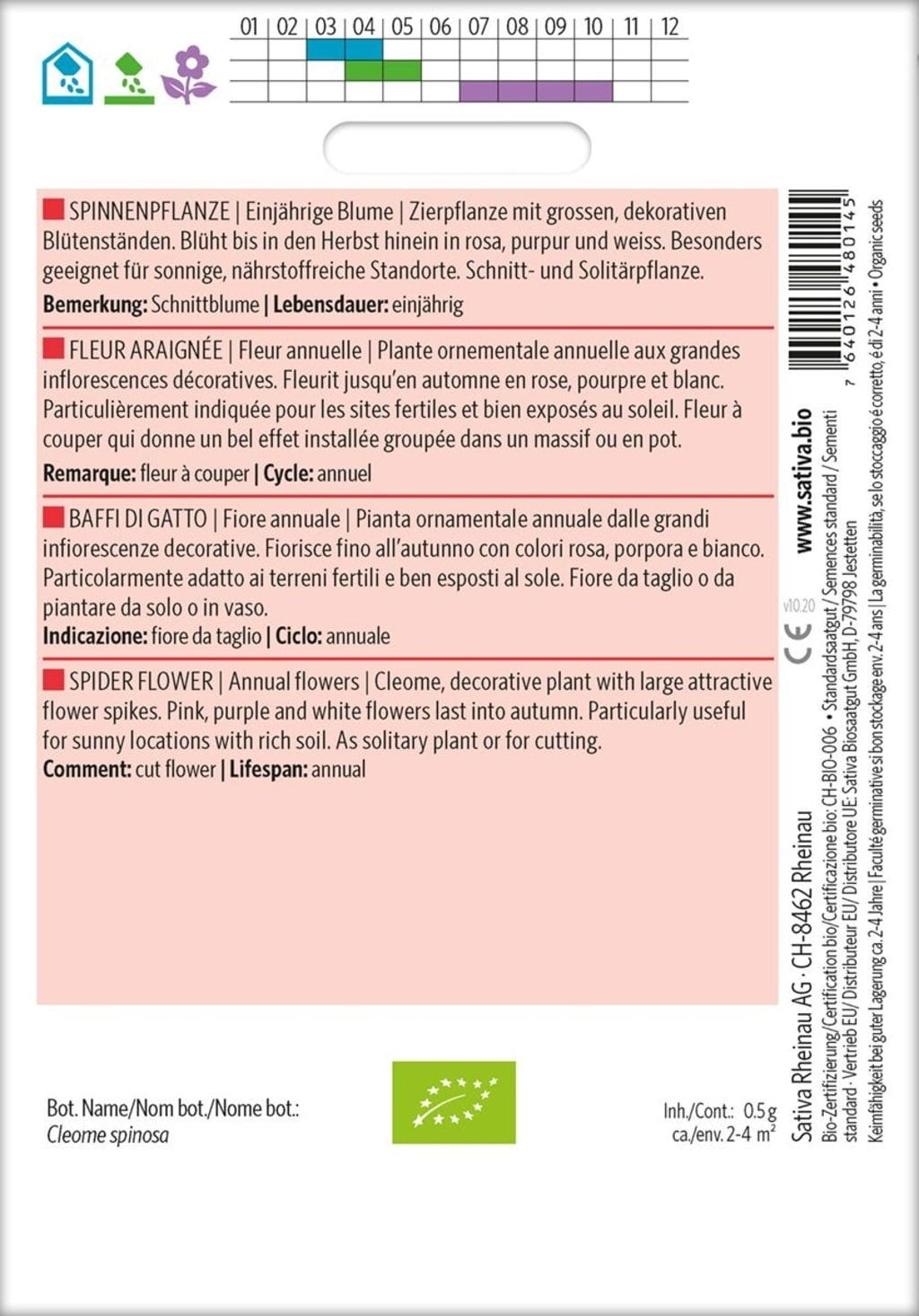 Sativa Ettårig Blomma "Spindelväxt", Eko