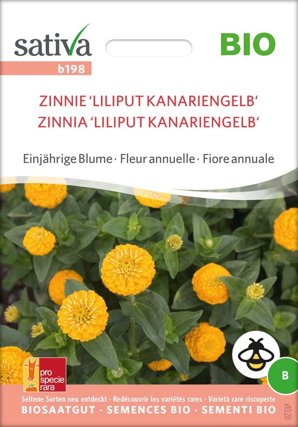 Sativa Ettårig Blomma "Zinnia 'Liliput Kanariegul'", Eko