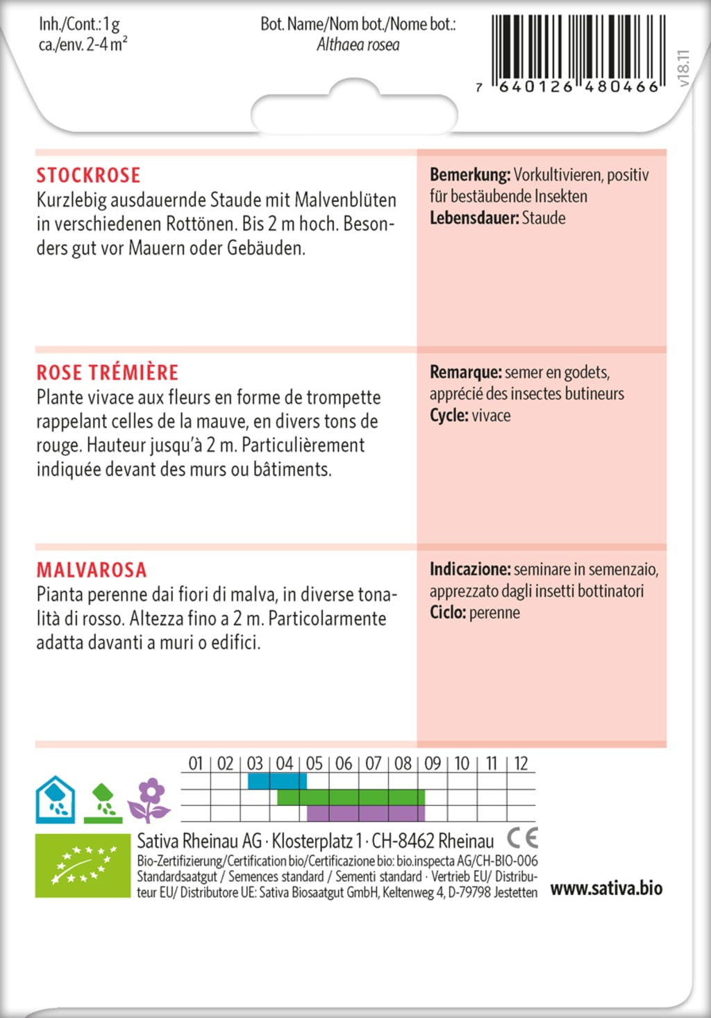 Den här kortlivade men fleråriga växten med malvablommor i olika röda nyanser kan bli upp till två meter hög.