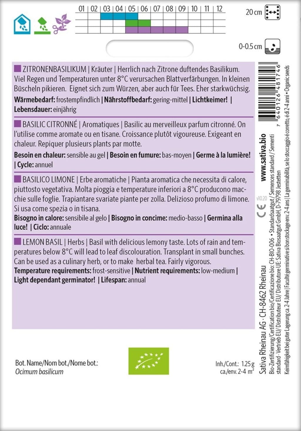 Sativa Örter "Citronbasilika", Eko