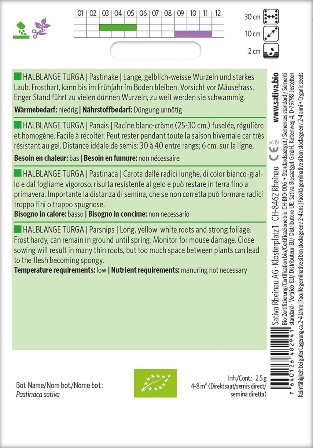 Sativa Palsternacka "Halblange Turga", Eko