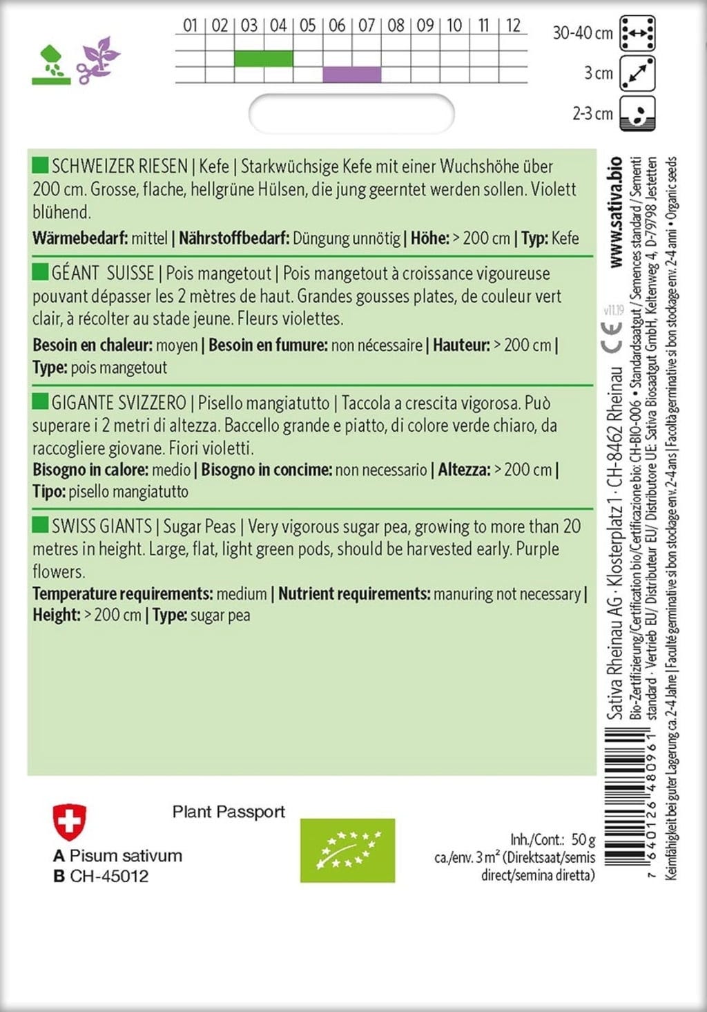Sativa Sockerärt "Schweizer Riesen", Eko