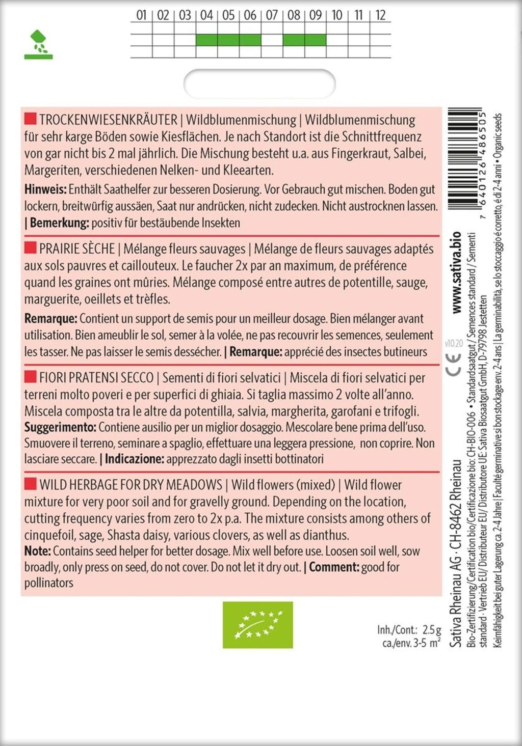 | Tillverkare: | Sativa Biosaatgut GmbH, Keltenweg 4, 79798 , Jestetten, Österrike, sativa@sativa.bio, www.sativa.bio |