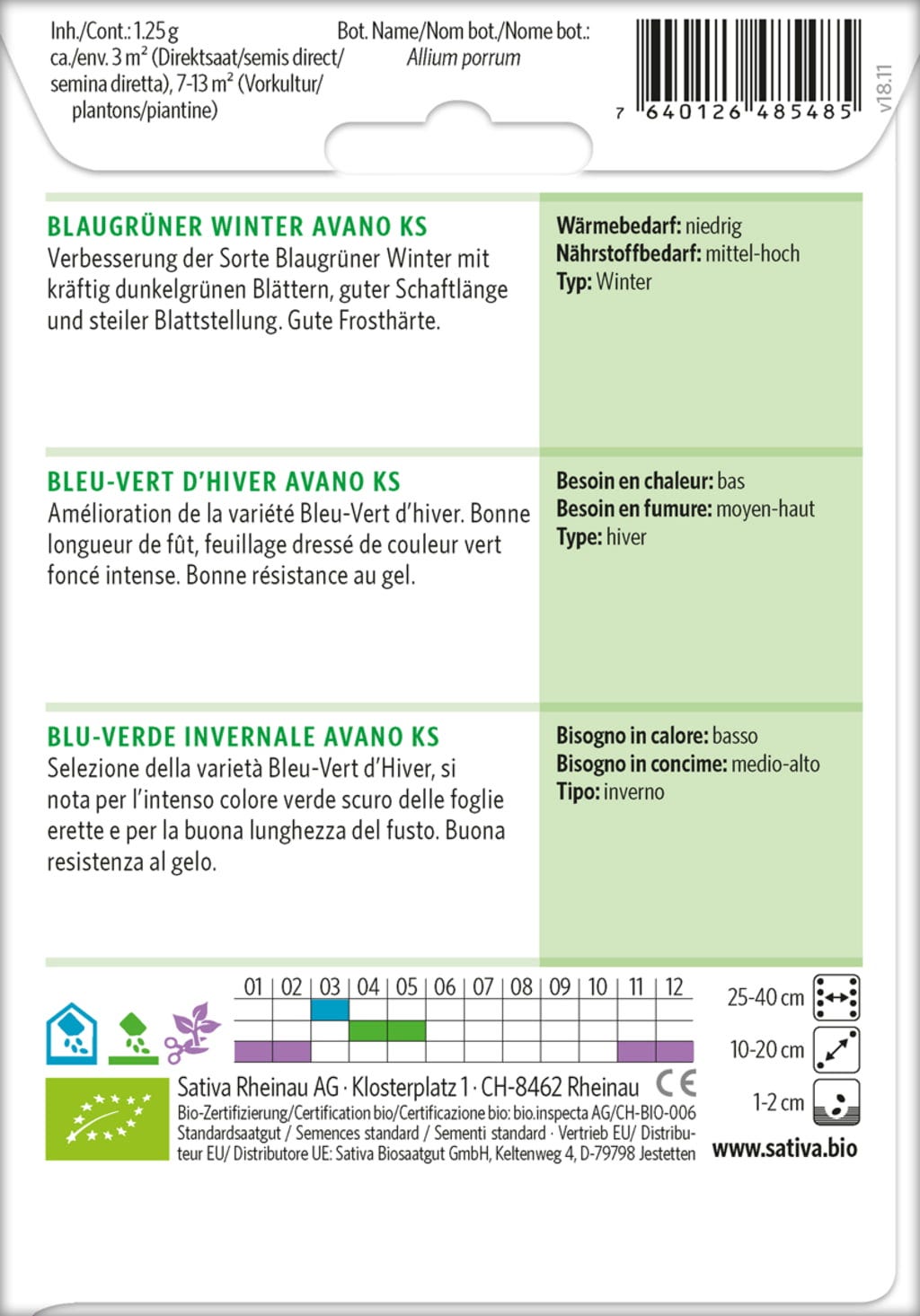 Sativa Vinterpurjolök "Blågrön Vinter Avano KS", Eko