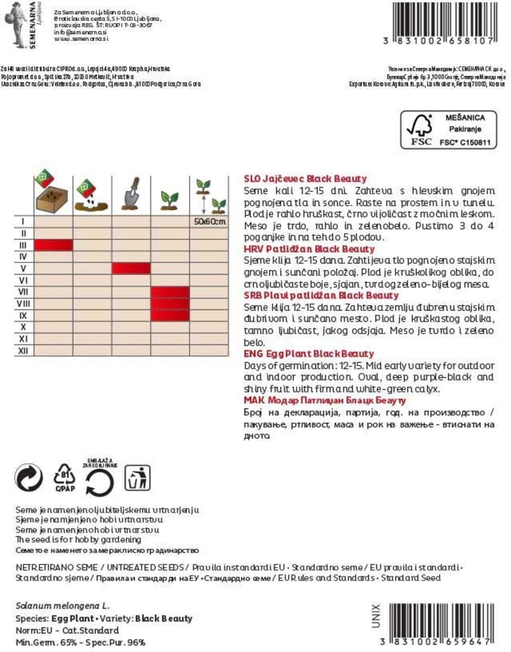 Semenarna Ljubljana Auberginefrön "Black Beauty", 2 g