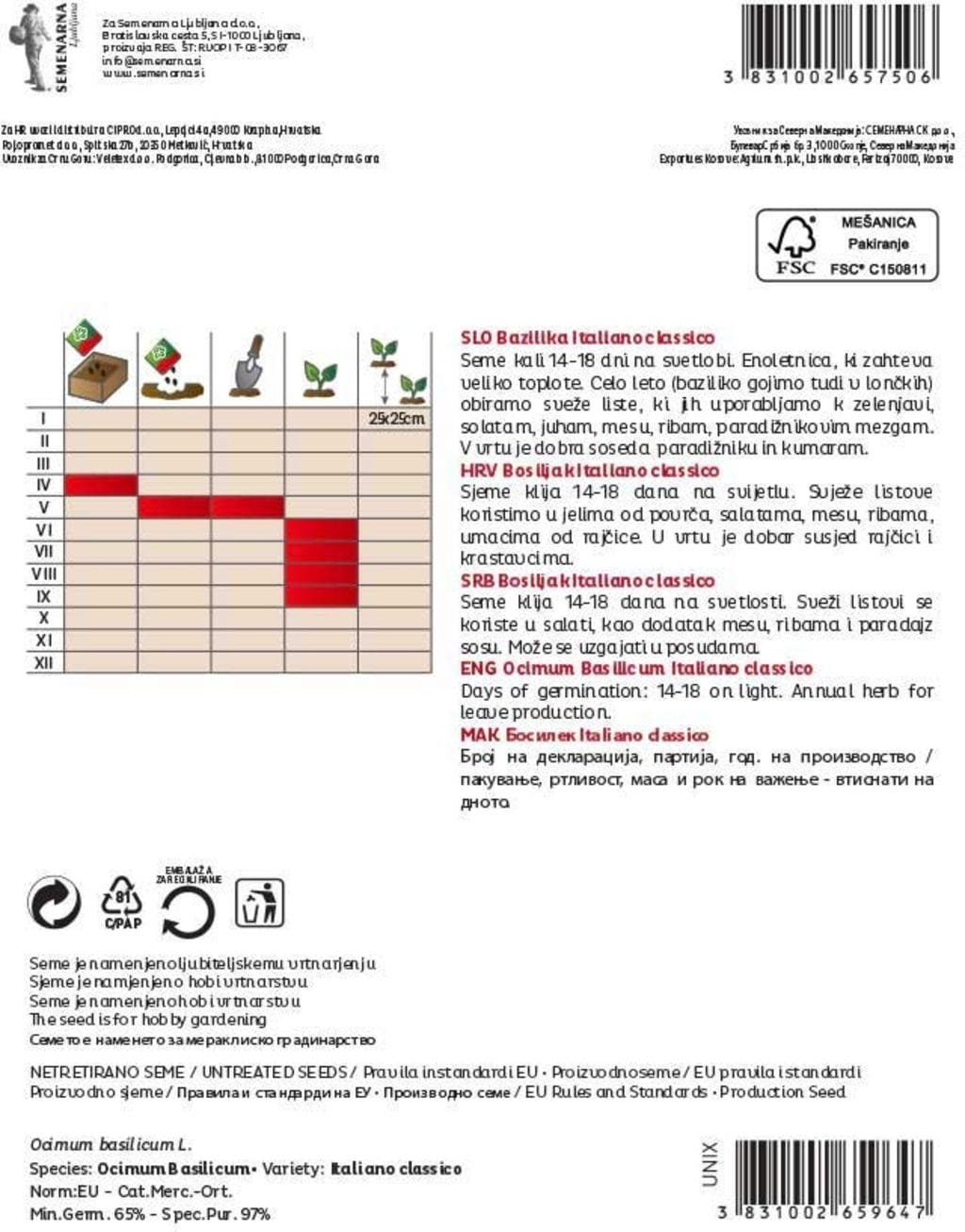 | Tillverkare: | Semenarna Ljubljana d.o.o., Bratislavska Cesta 5, 1000, Ljubljana, Slovenien, info@semenarna.si, www.semenarna.si |