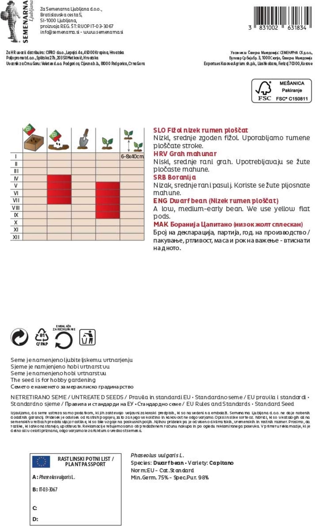 Semenarna Ljubljana Buskbönsfrön "Capitano", 200 g