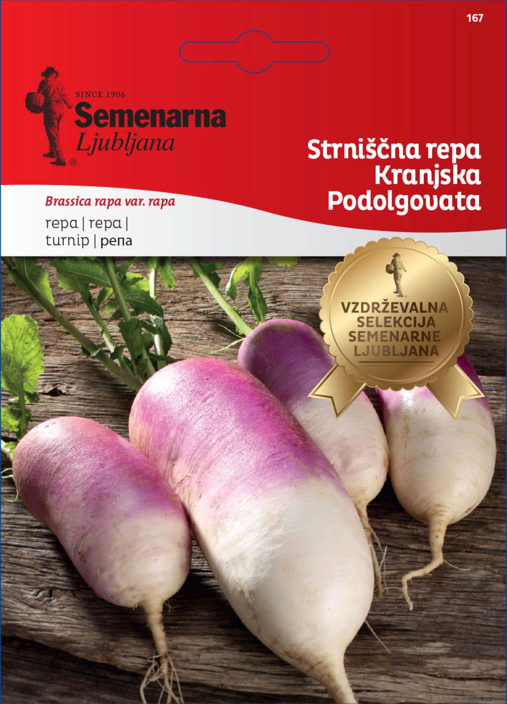 Denna nyare slovenska sort utvecklar avlånga rovor med rödviolett topp. Sorten ”Kranjska podolgovata” är särskilt populär bland hobbyodlare tack vare sin avlånga form, vilket gör den lättare att skära. Den har en utmärkt smak och passar mycket bra för inläggning. Sorten trivs i alla jordar så länge de är tillräckligt fuktiga.