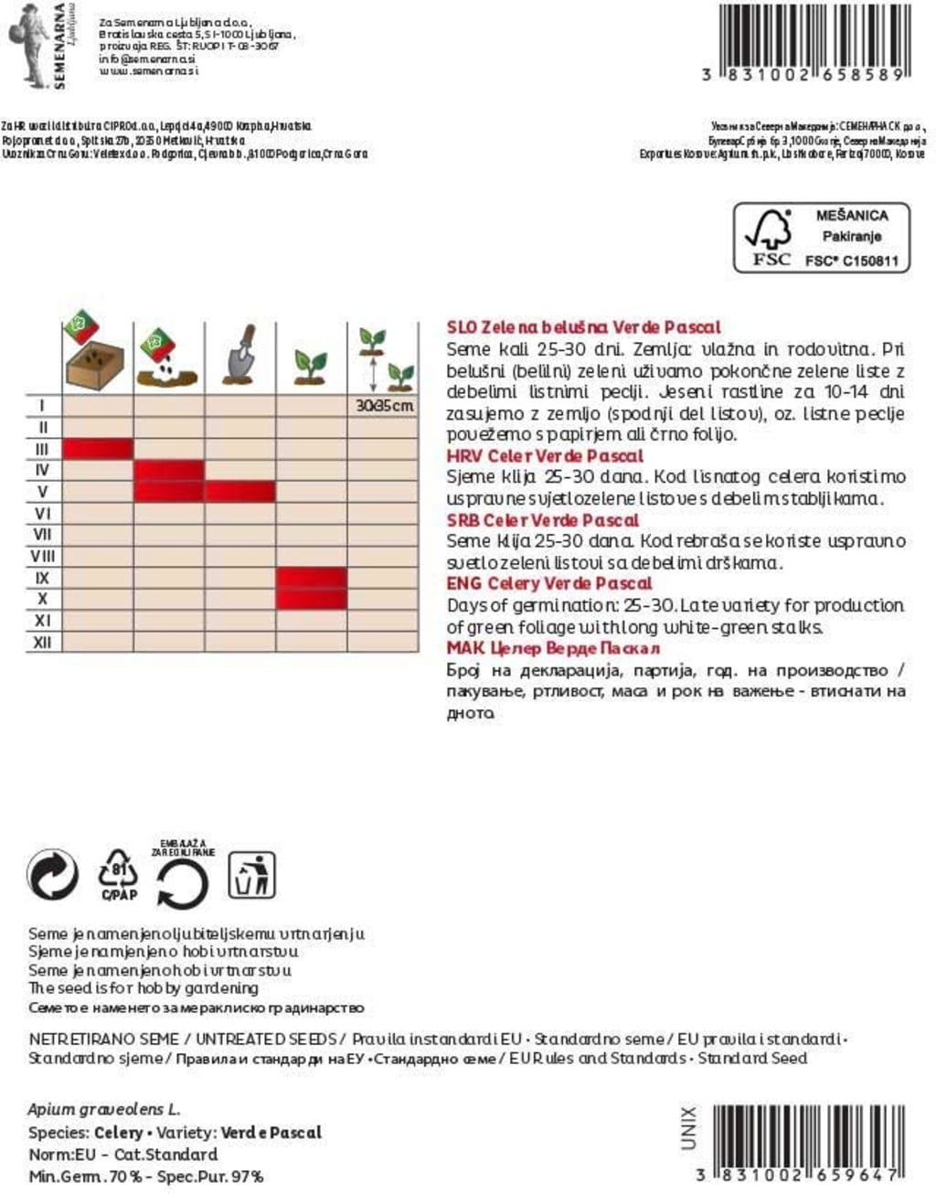 Semenarna Ljubljana Stjälksellerifrön "Verde Pascal", 4 g