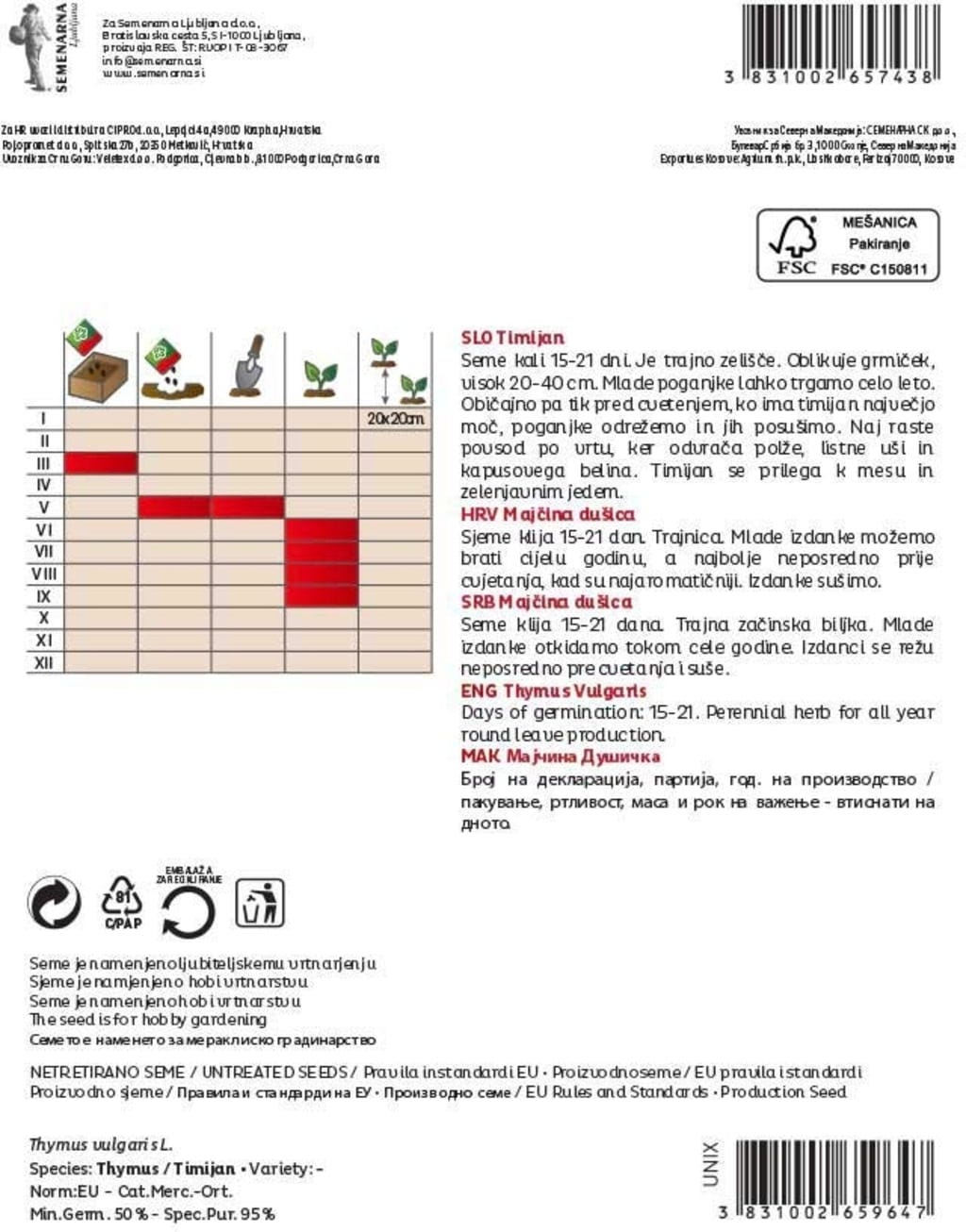 Semenarna Ljubljana Timjanfrön, 0,50 g