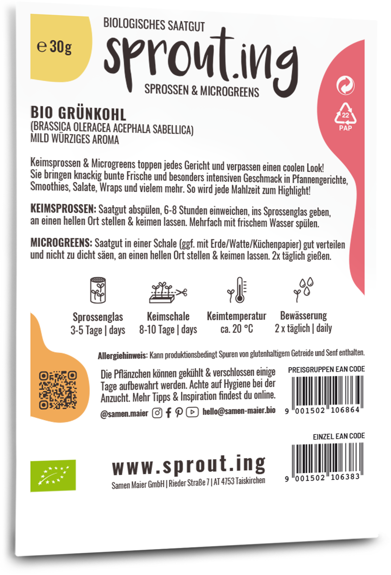 Grönkål, i form av groddar eller mikrogrönsaker, är ett krispigt, näringsrikt tillskott till din kost – oavsett om det är som topping eller ingrediens i wokrätter, smoothies, sallader, wraps och mycket mer. Deras milt kryddiga arom är behaglig och gör varje måltid till en höjdpunkt.