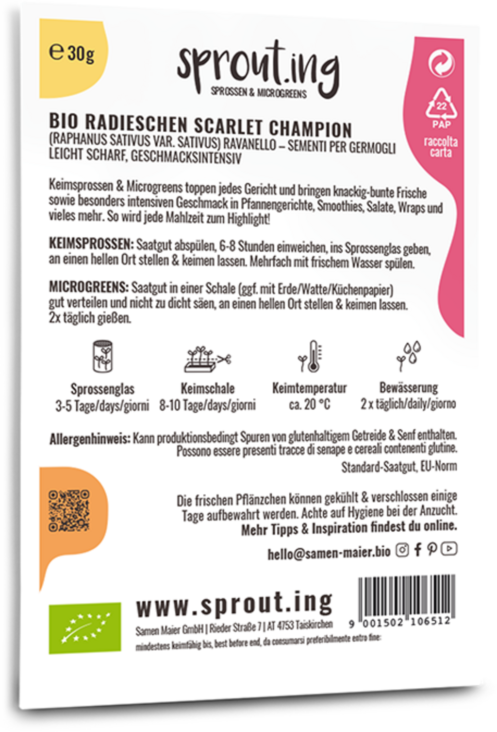 Sprout.ing Organisk rädisa Scarlet Champion, 30 g